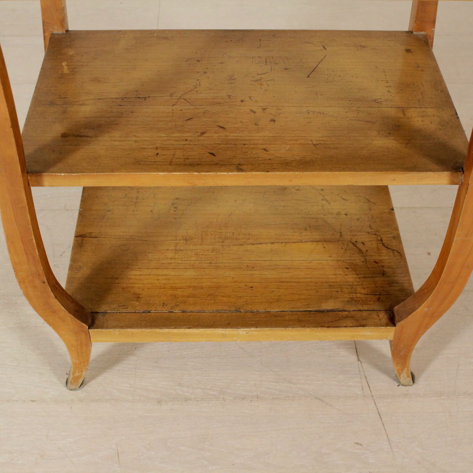 A small shelf, beech and glass. Manufactured in Italy, 1950s.