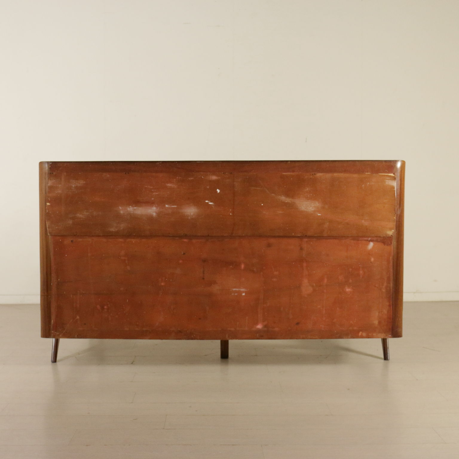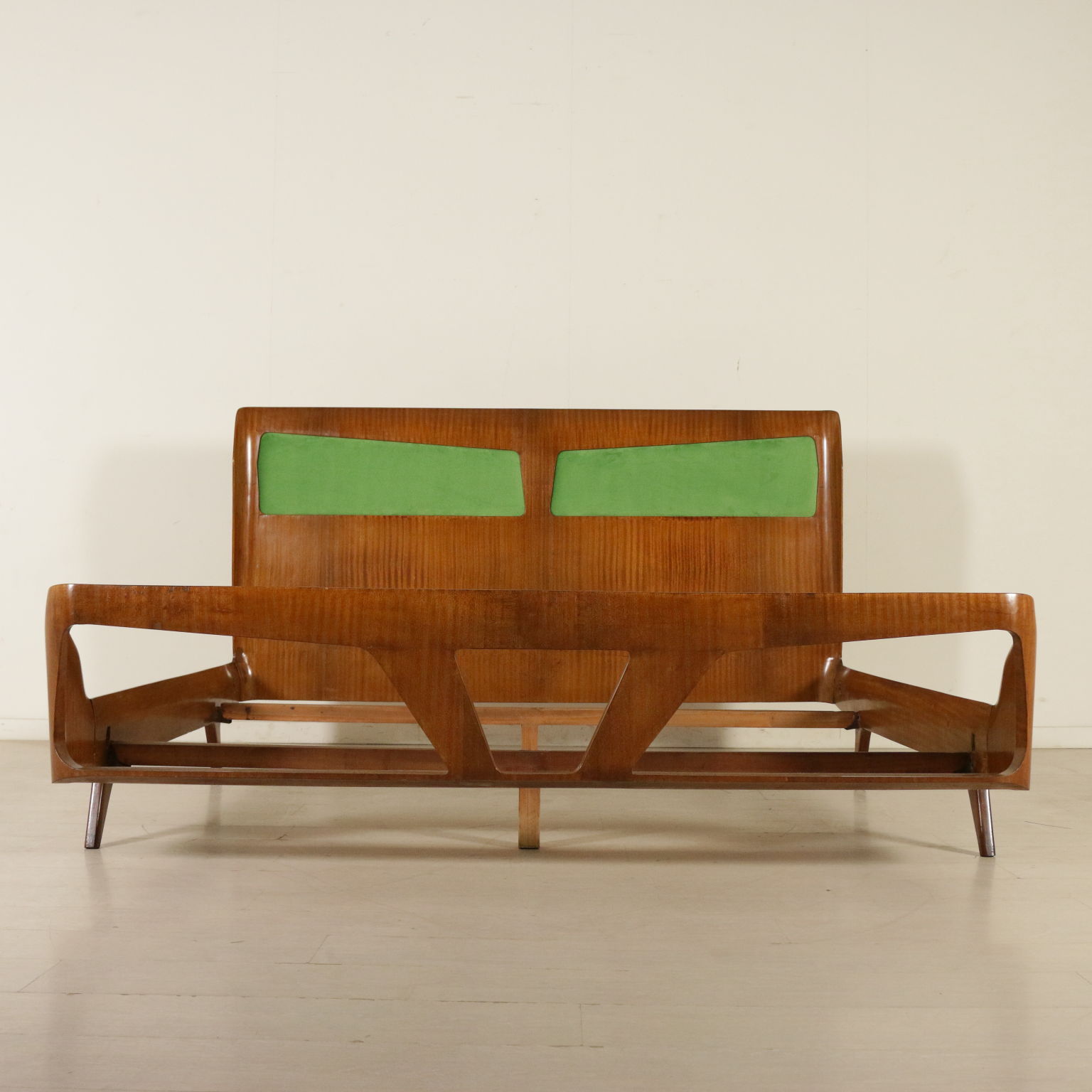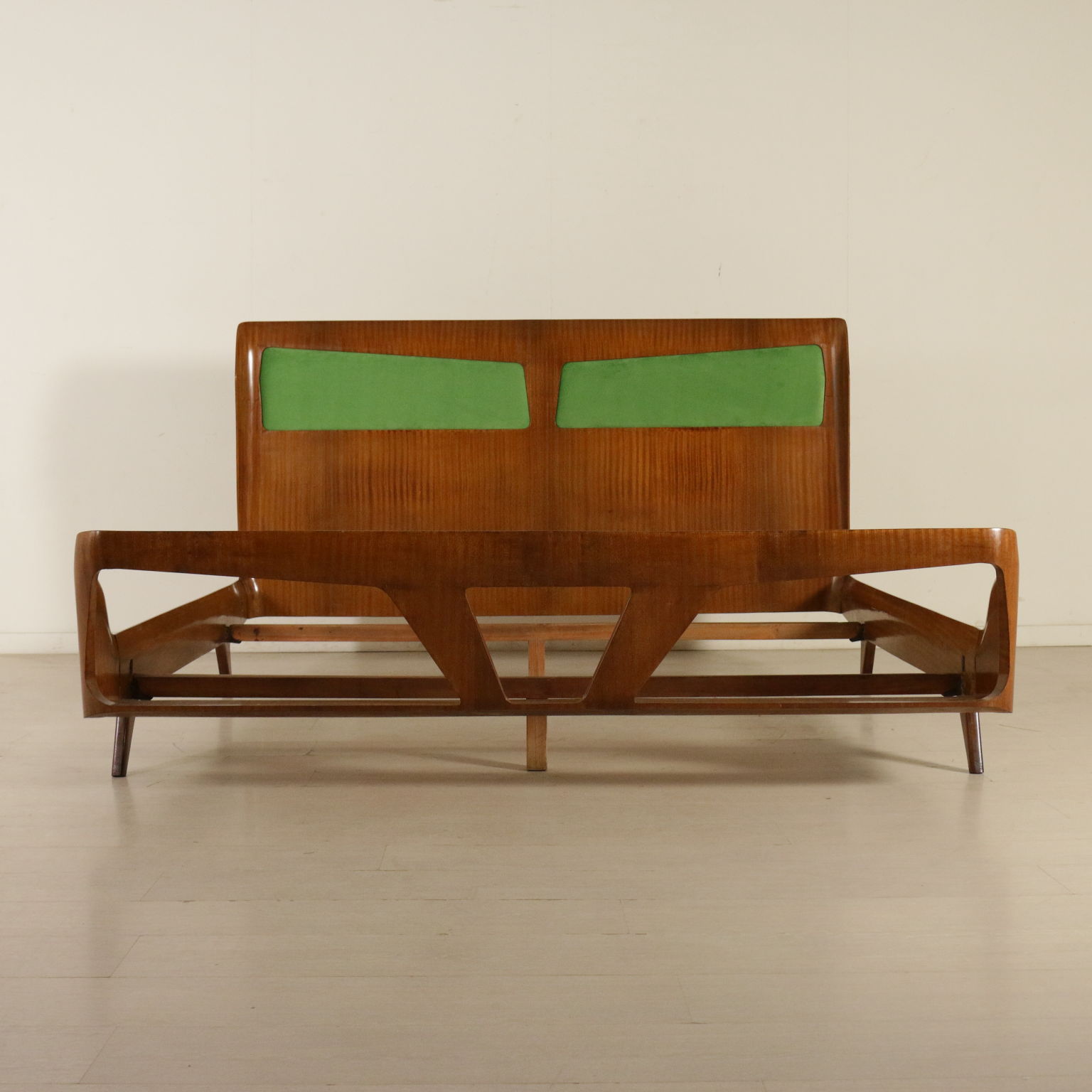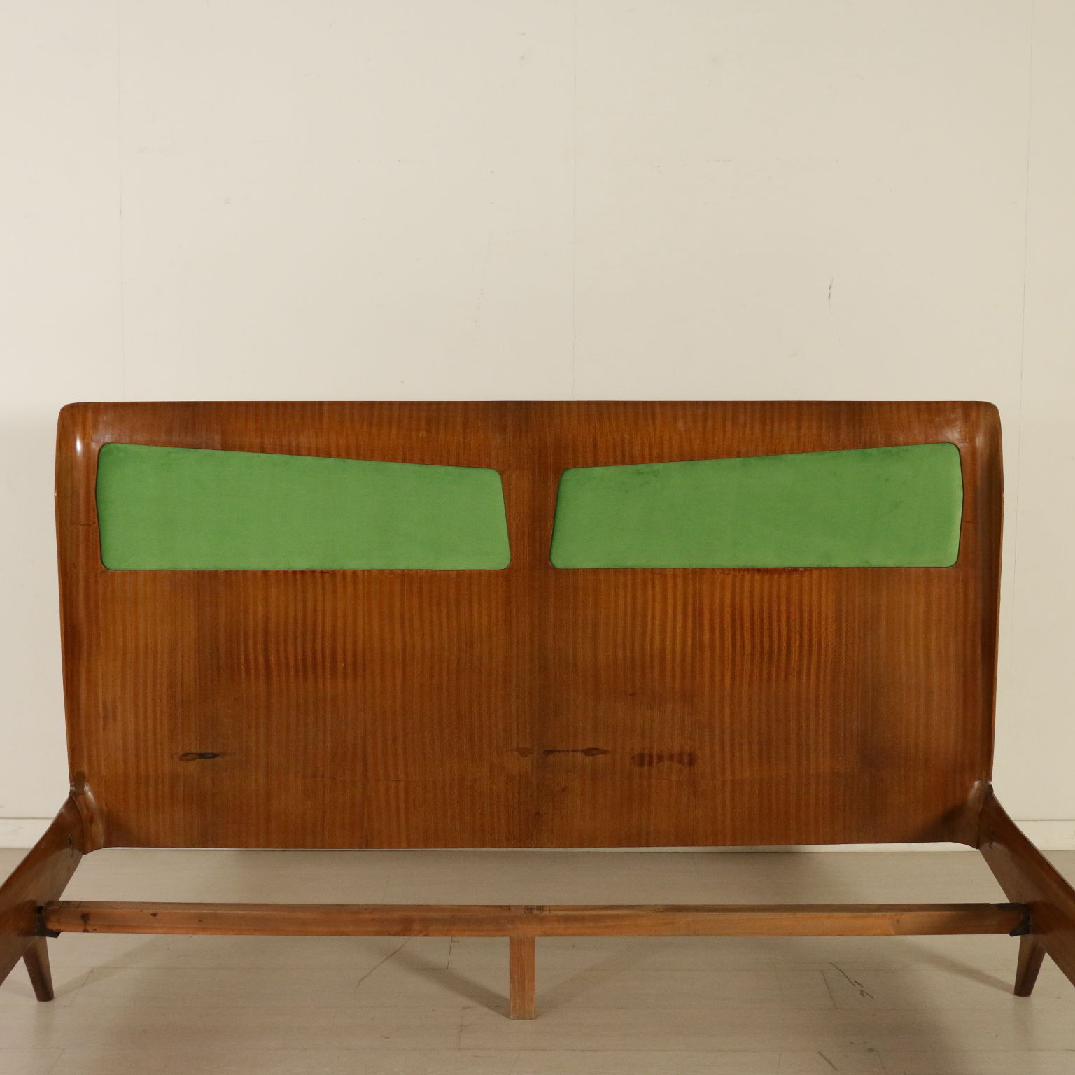 A double bed, mahogany veneer, velvet inserts on the headboard. Manufactured in Italy, 1950s.