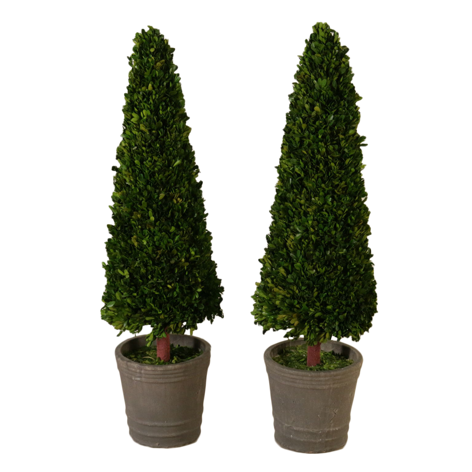 A pair of saplings, natural treated box leaves. Manufactured in Italy.