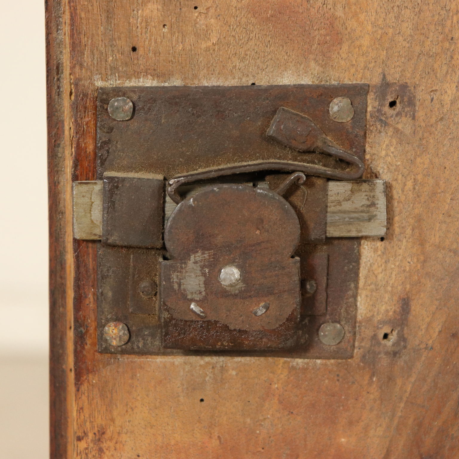A pedestal desk from Veneto, Italy. On the sides, a door and three aligned drawers under the top. Small drawer under the top and turned feet. Manufactured in Italy, first half of the 18th century.