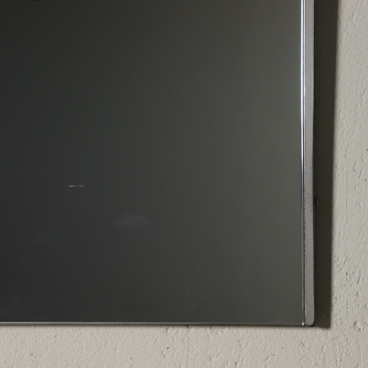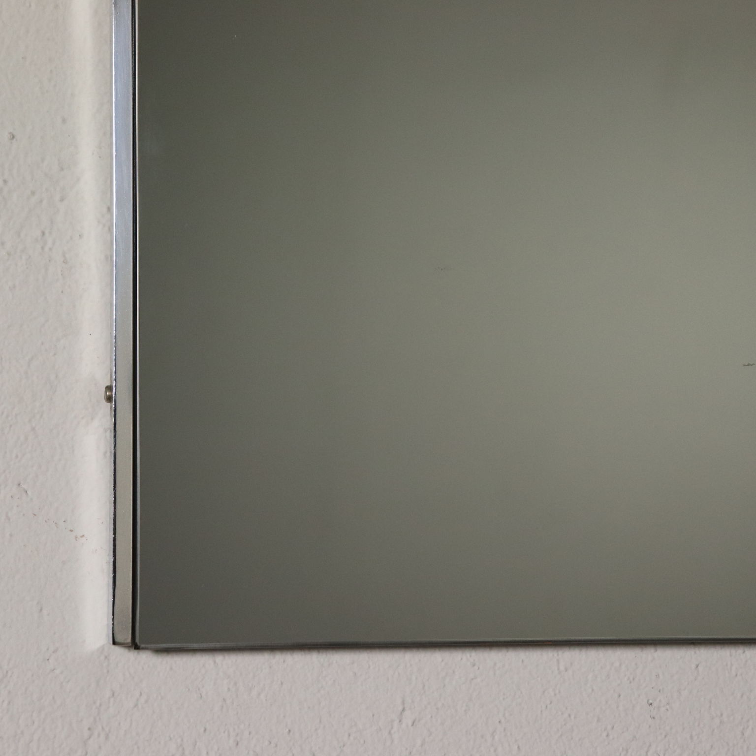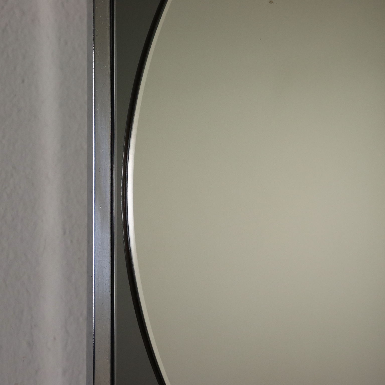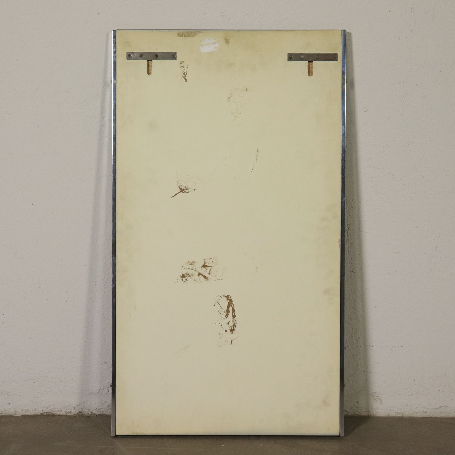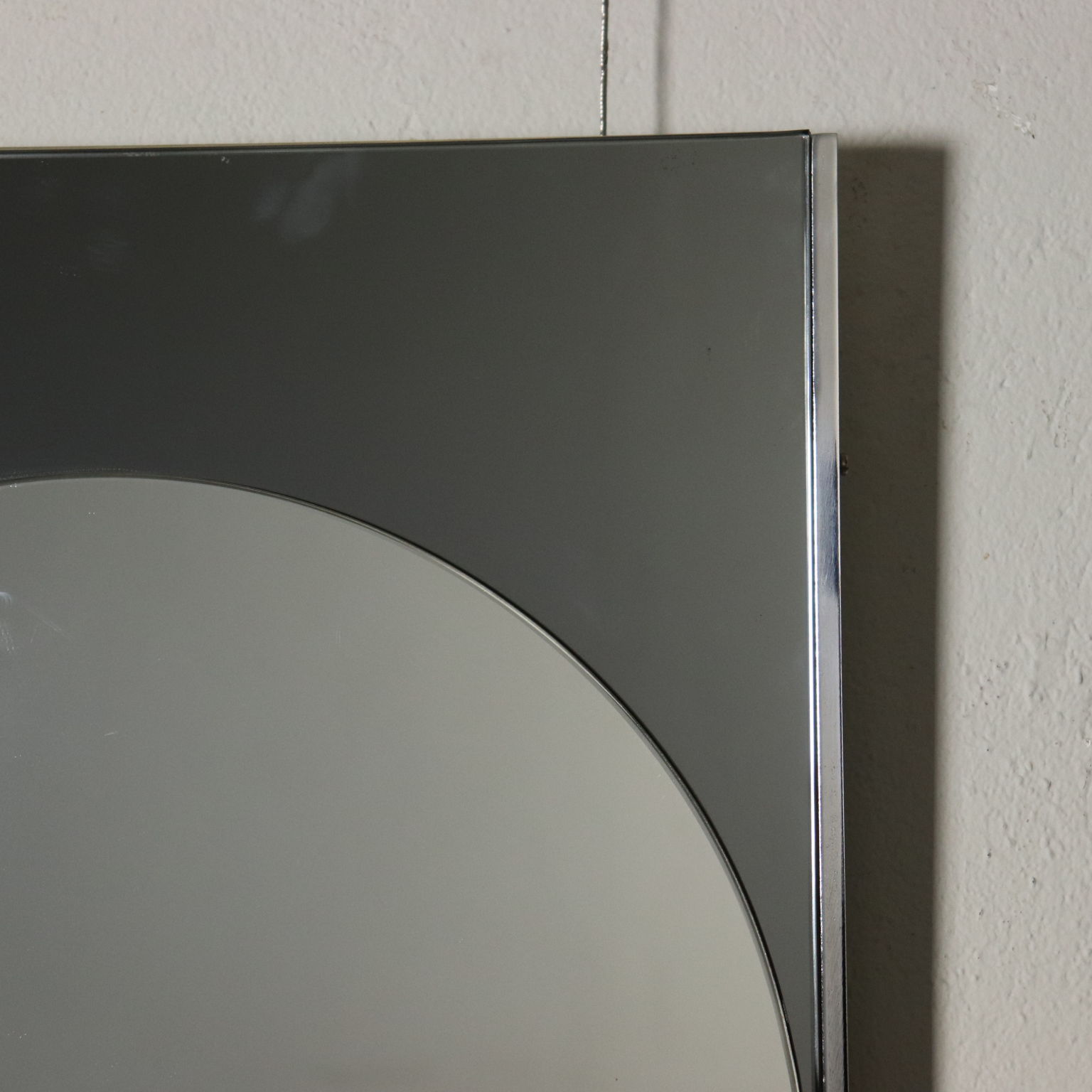 Mirror on wooden panel, metal outlines, different shades of glass. Manufactured in Italy, 1960s.