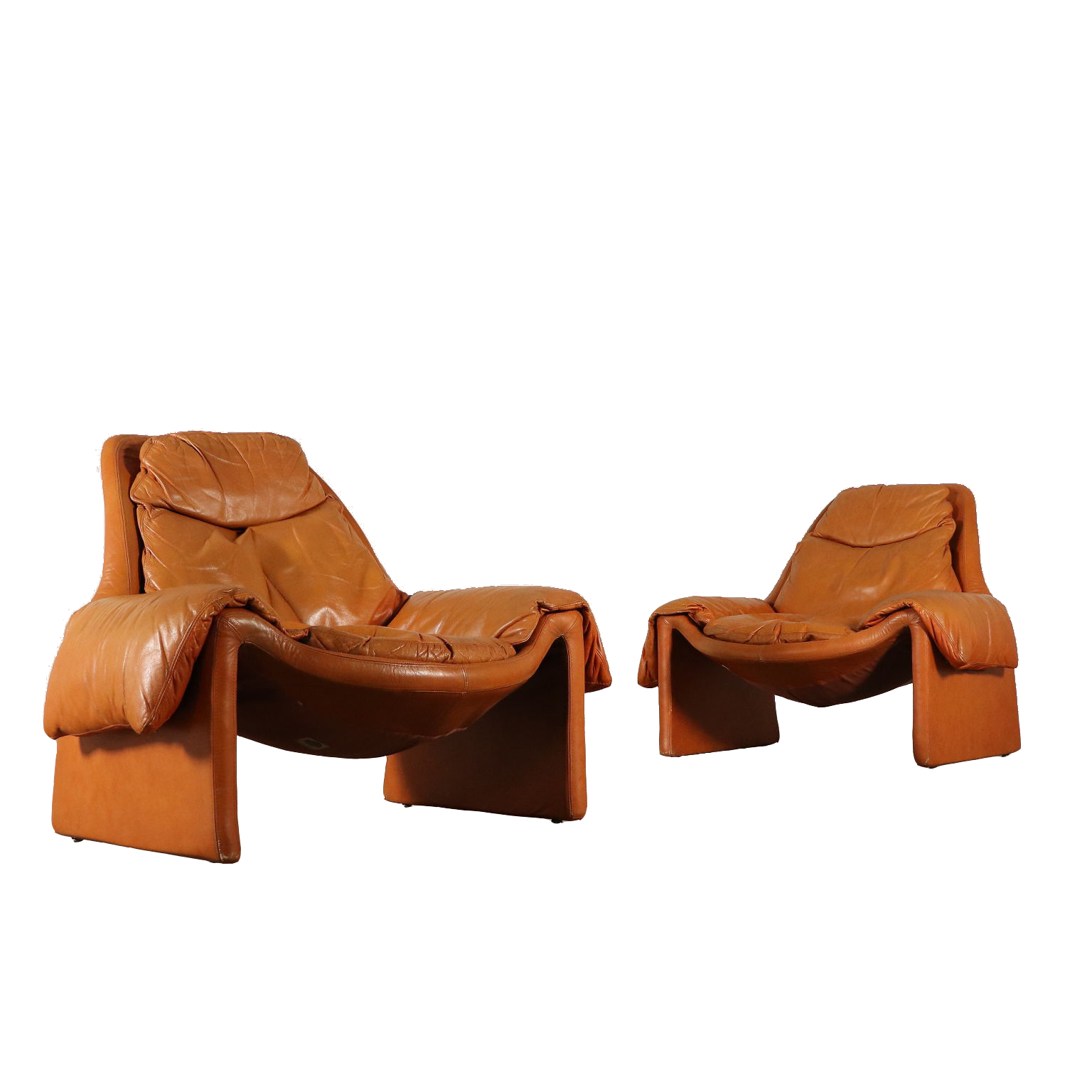 Pair of Armchairs for Saporiti Leather Vintage Italy 1980s