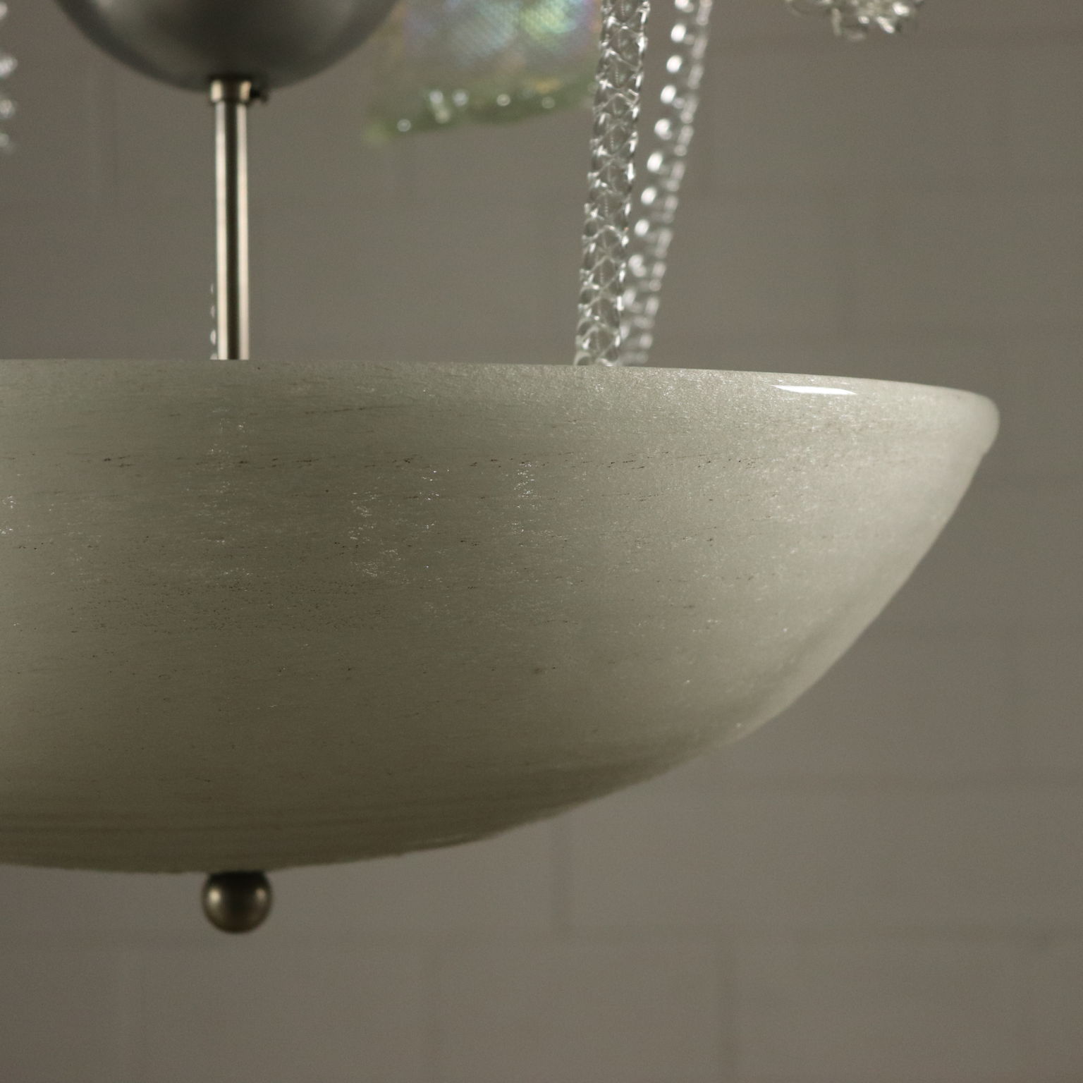 Ceiling light made of glass and crystal. Manufactured in Italy, 1940s-1950s.
