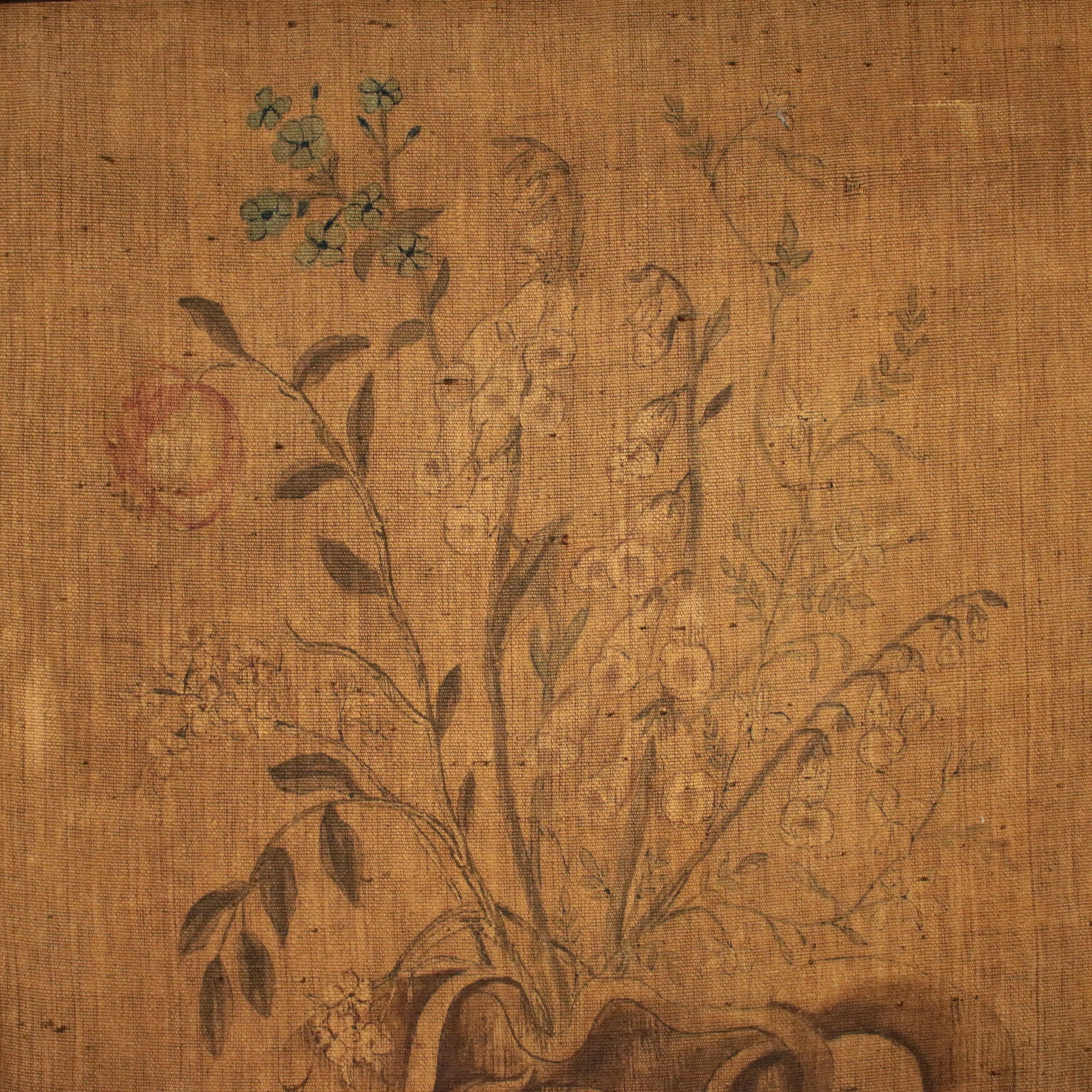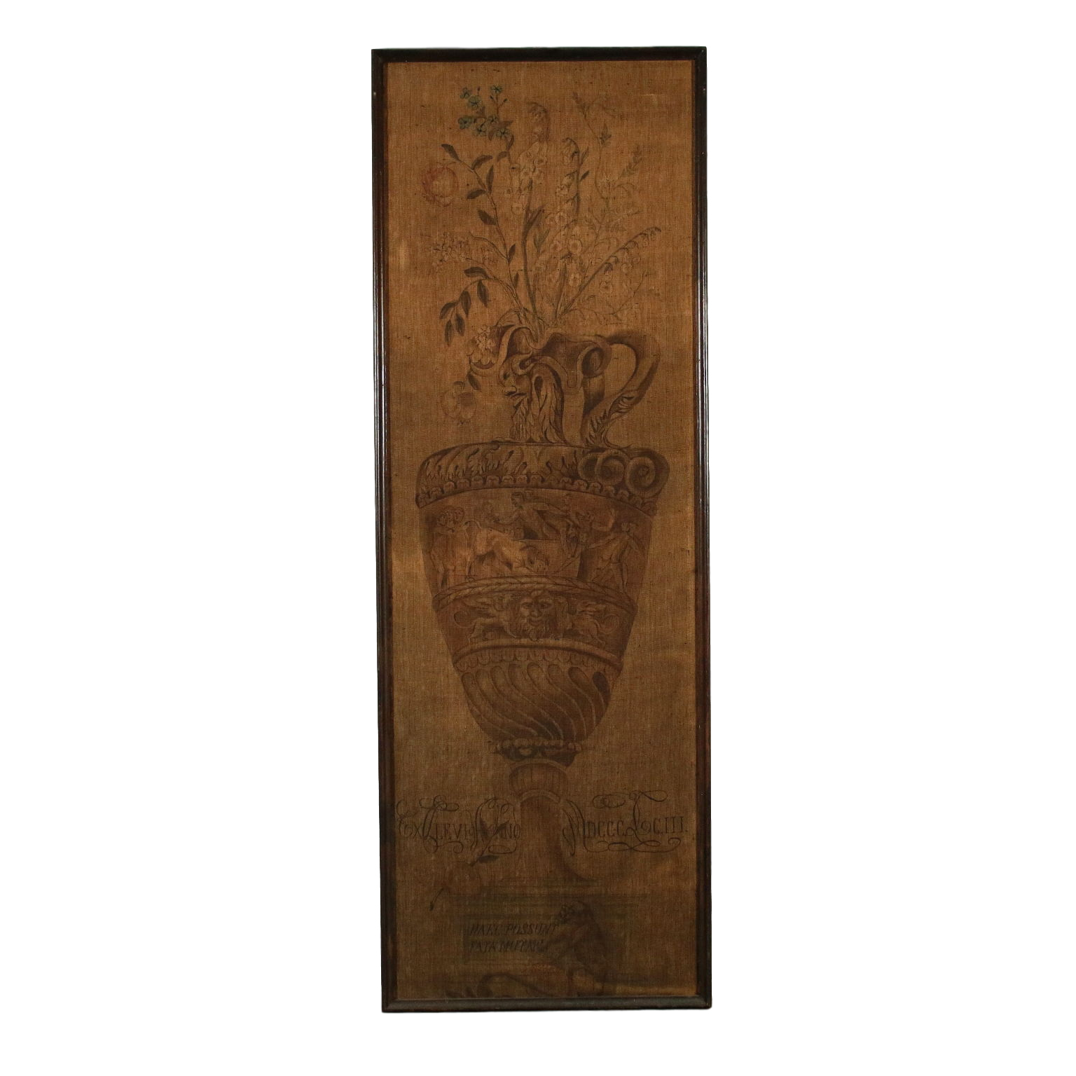 Grass juice. On the bottom the latin phrase "Explevi anno 1803" (it has been completed in the year 1803) and the motto "Haec possunt fata mutari", which can be translated "These fates can be changed". Requires cleaning because it was darkened by the dust.