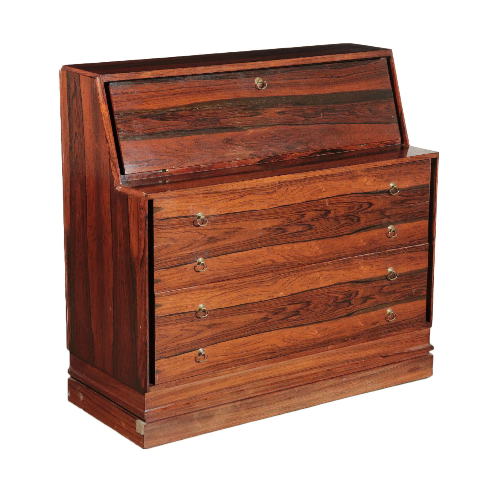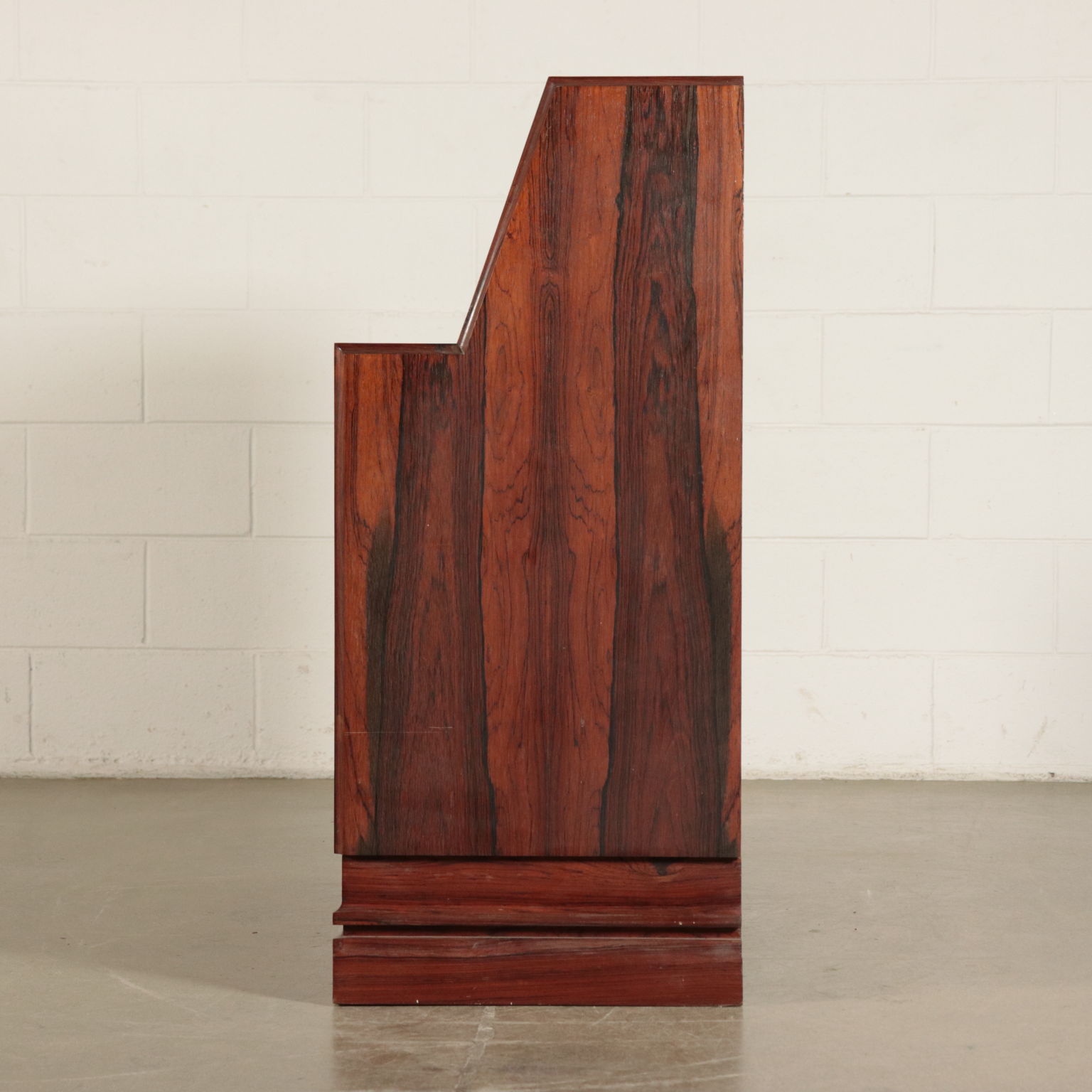 Chest of drawers with a raised flap; wood veneer rosewood.