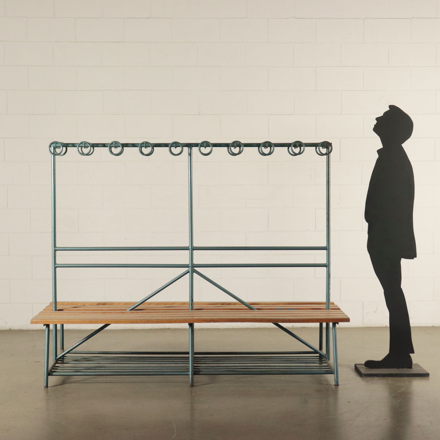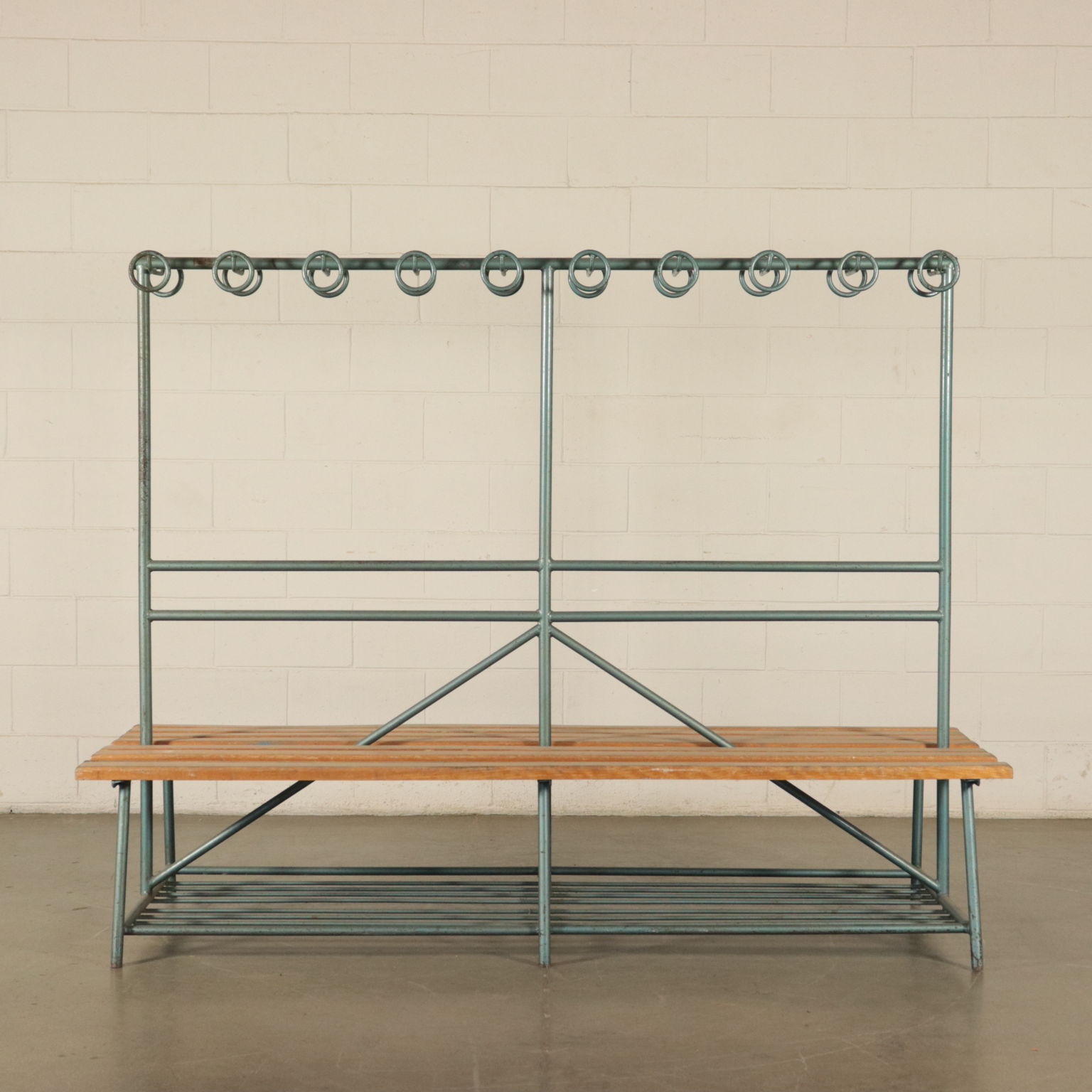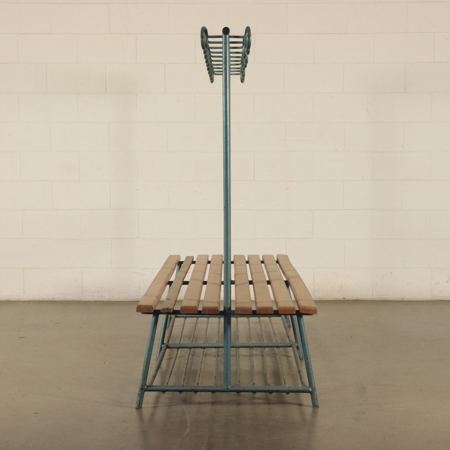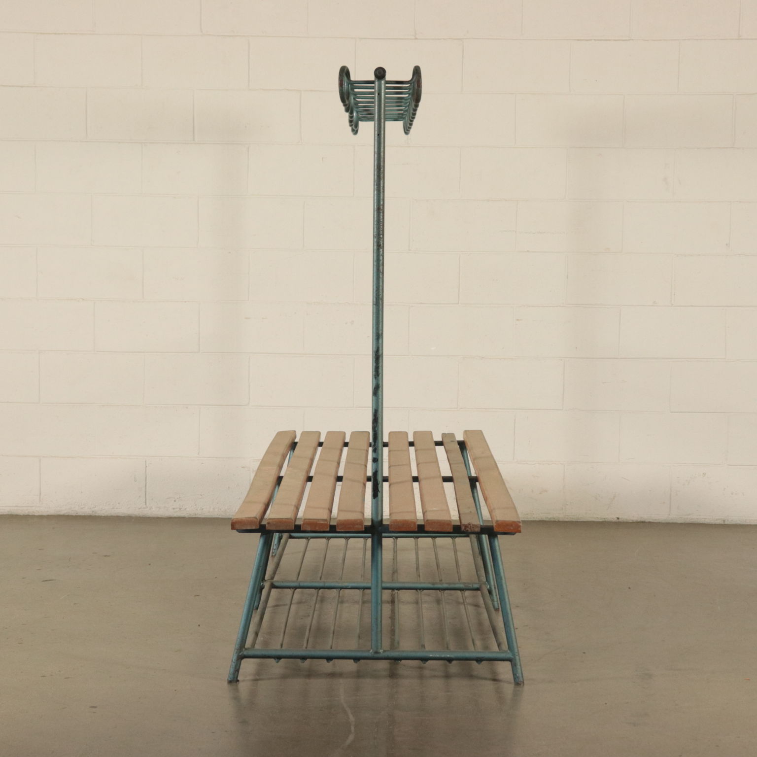 Vintage Gym Locker's Bench Coat Rack Metal Wood Italy 1960s