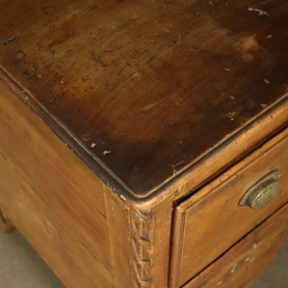 Neo-Classical Veronese open desk supported by grooved truncated-conical legs connected to the lower band by curly shelves; it has 5 drawers and a central open compartment. it is engraved with rosewindows above the legs and refined pillars engreved in the legs. Walnut with silver fir interiors.