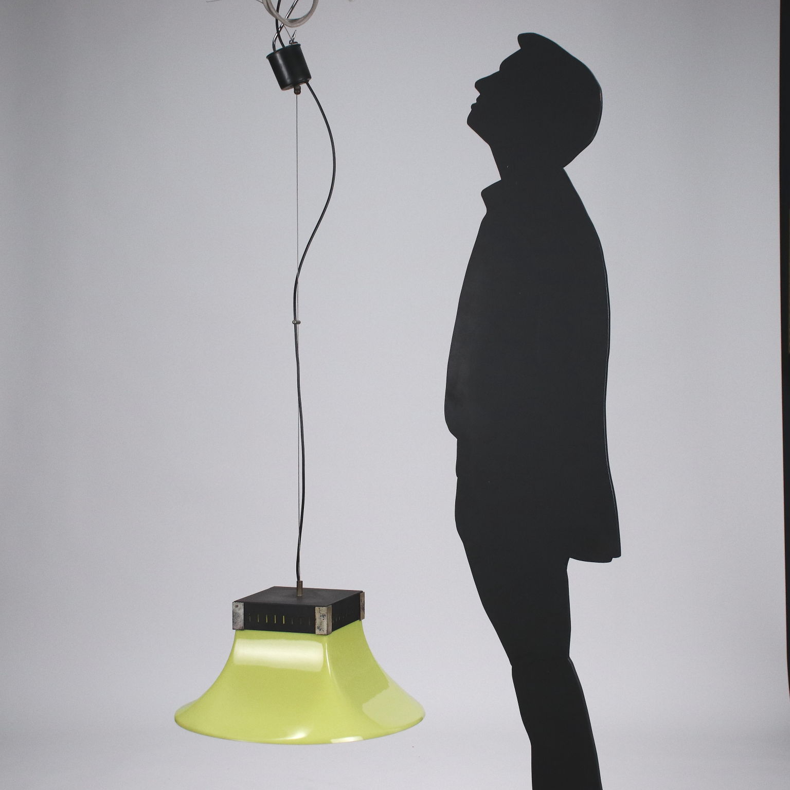 Ceiling lamp, enamelled aluminum, brass, methacrylate.