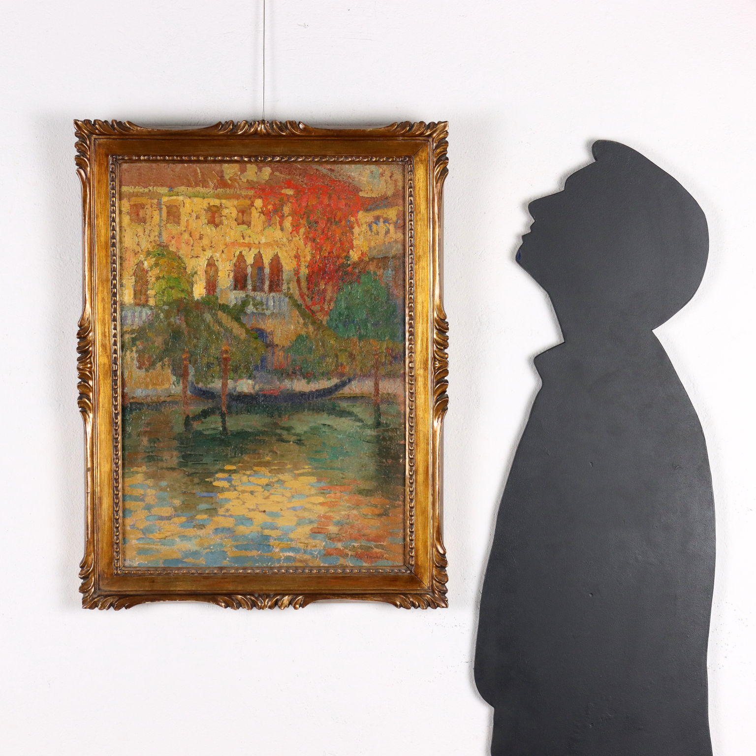Oil on cardboard. Signed Gigi Moretti lower right. Of Luigi Moretti we know above all glimpses of the city in born and died, Venice. With an impressionist flavor, he proposes glimpses that change according to the play of light and shadow, with colors that blend and overlap to create chromatic games. The work is presented in a late '880-early' 900 frame.