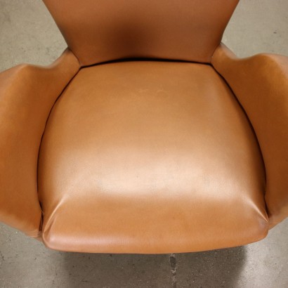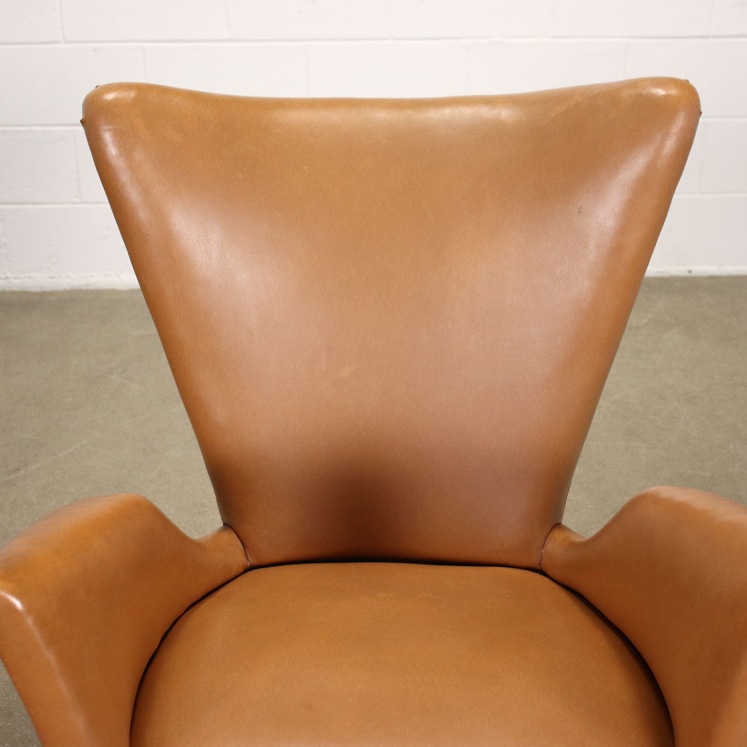 Pair of armchairs, spring padding, imitation leather upholstery.