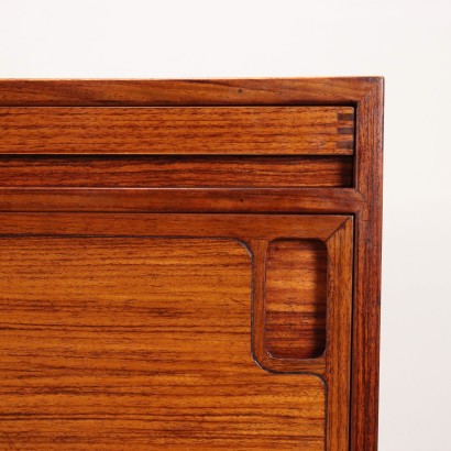 Description Sideboard with sliding doors, central visible drawers and small drawers under the top; Jacaranda wood veneer.
