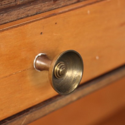 Vanity table with mirror and visible drawers in exotic wood veneer and beech wood with carved wooden legs.