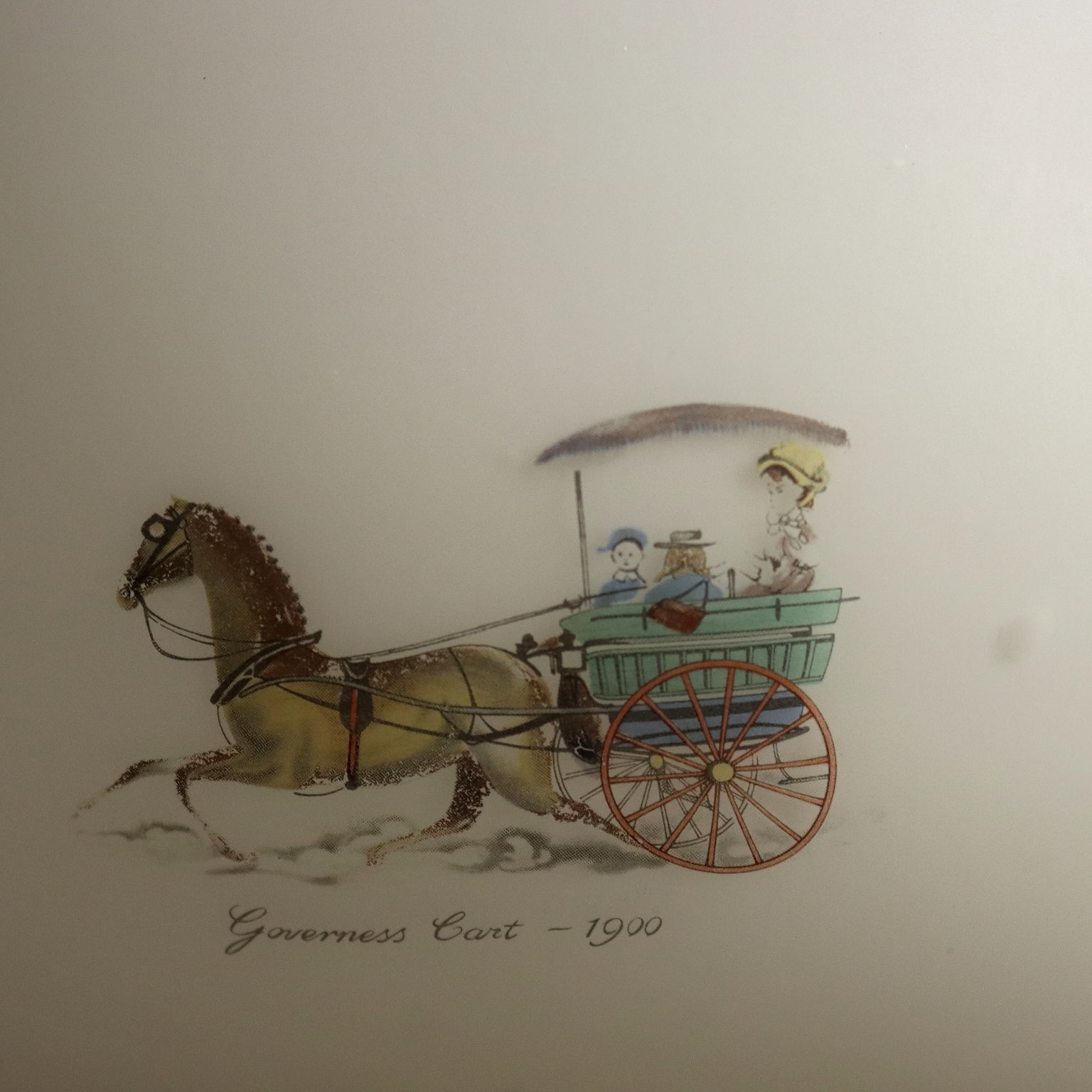 Ceiling lamp; white opal glass with decorative designs.