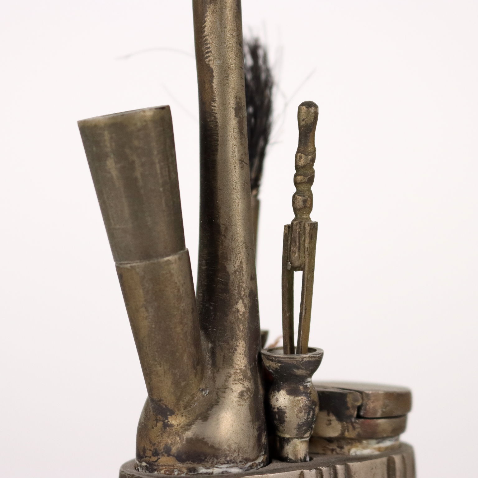 Small pipe in silver-plated metal and complete with all its accessories, decorated with cherry blossom motifs on the sides.