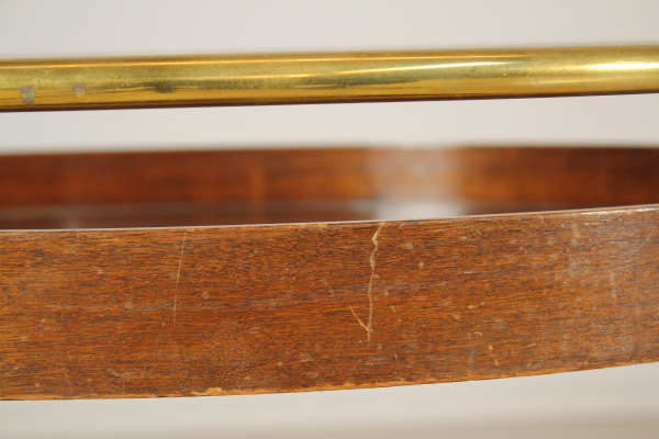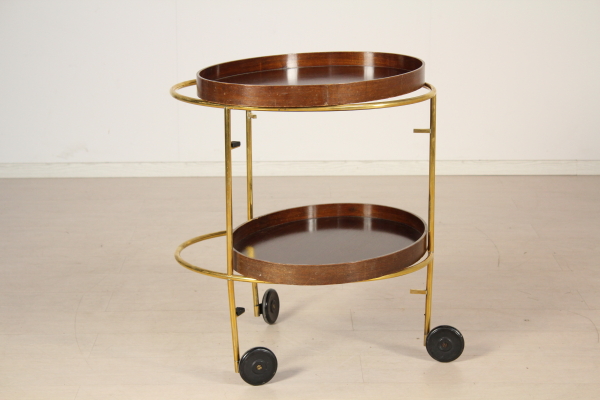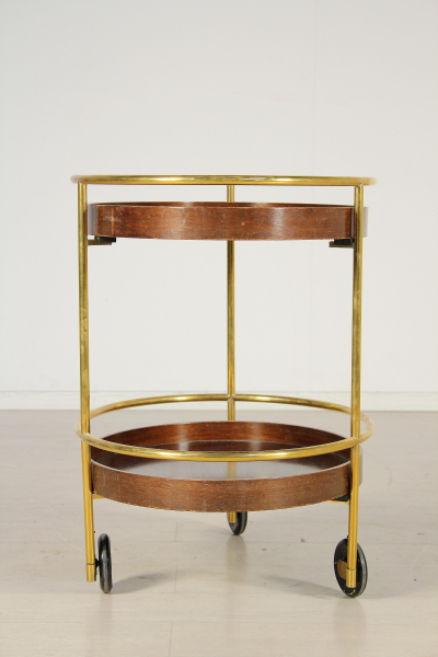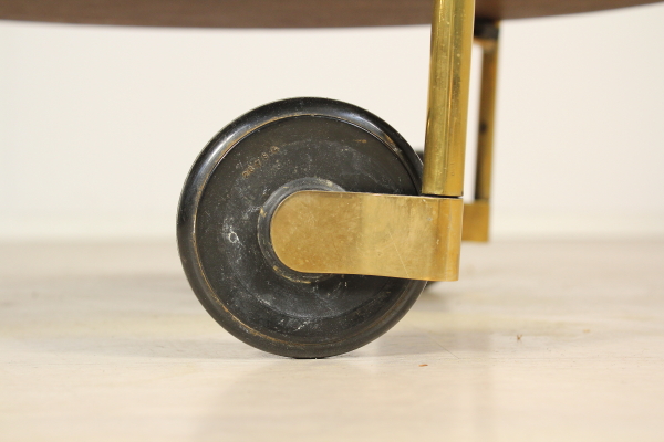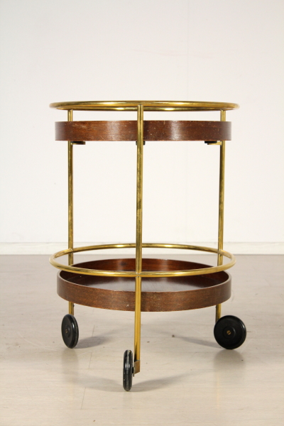 Serving trolley; Mahogany veneered wood, brass. Good condition, shows little signs of wear.
