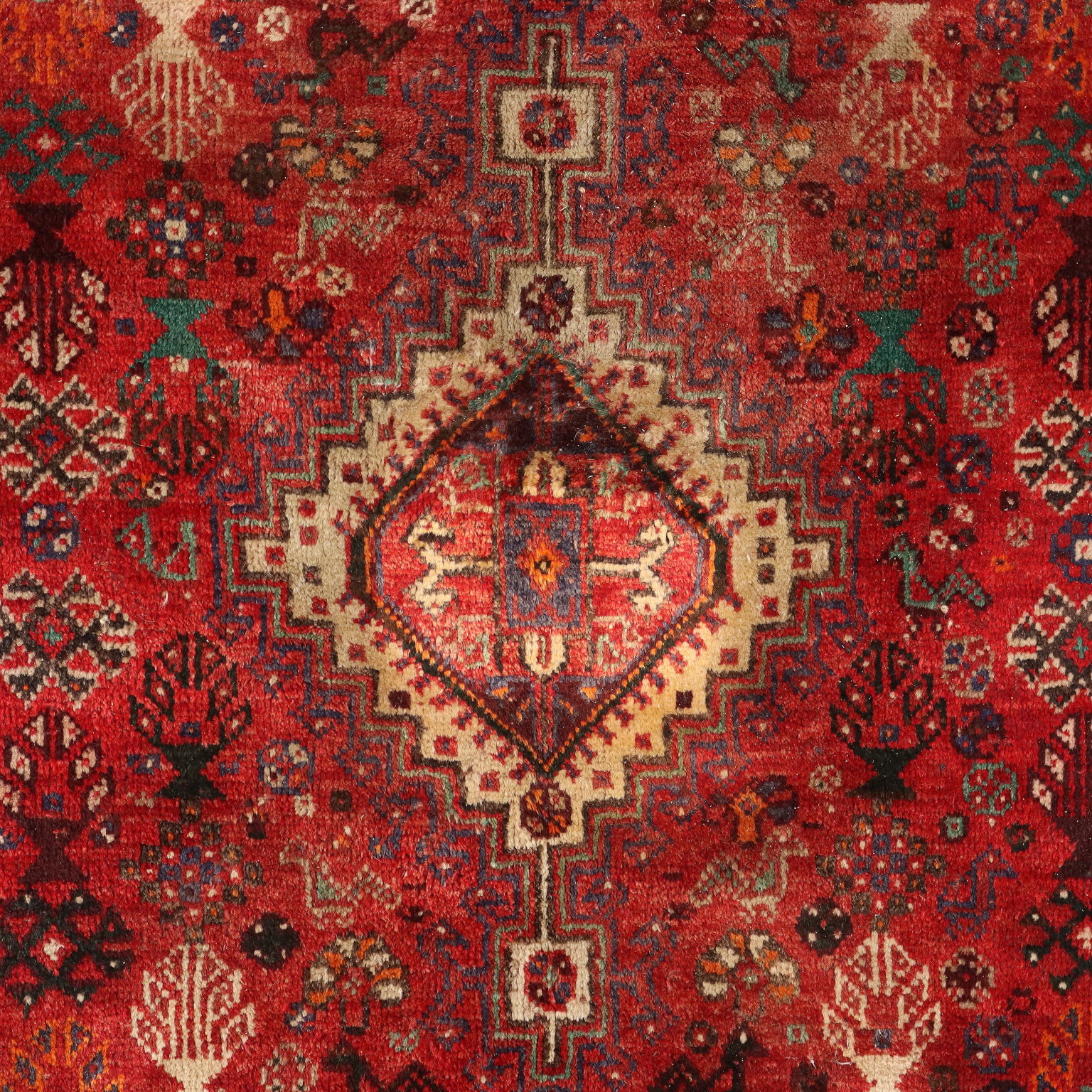 Vintage Shiraz Carpet Iran 1950s-60s Furnishing Cotton Wool Big Knot