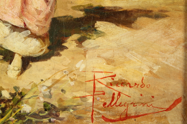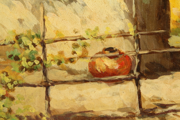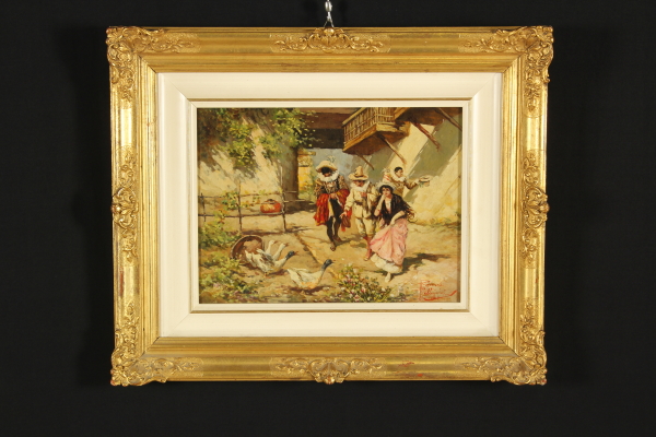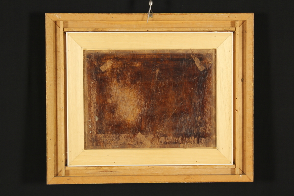 Oil on plywood by pilgrims. Signature in the lower right-hand corner. Framed without glass.