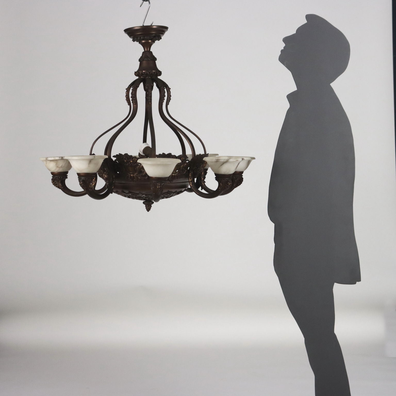 Ancient Art Decò Chandelier 10 Lights Early '900 Bronze Alabaster - Italy, Early XX Century