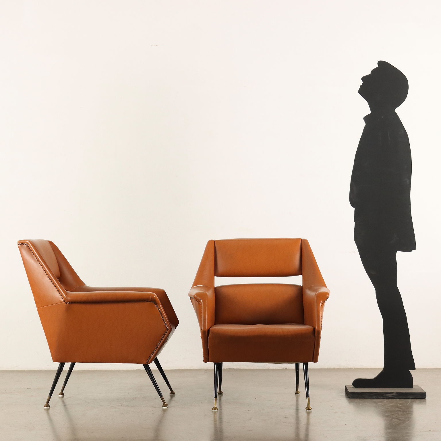 Vintage Armchairs 1950s-60s Padding Foam Leatherette Upholstery