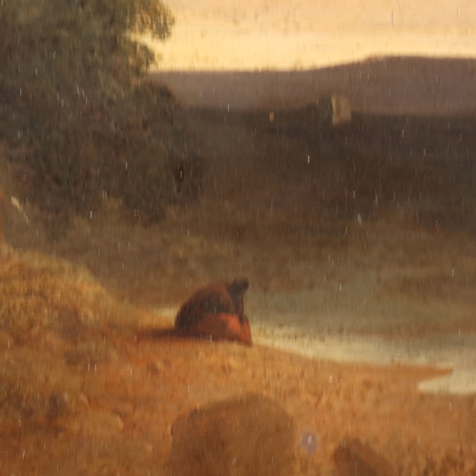 Painting Landscape by Gottardo Valentini Oil on Hardboard XIX Century - Figure in Landscape