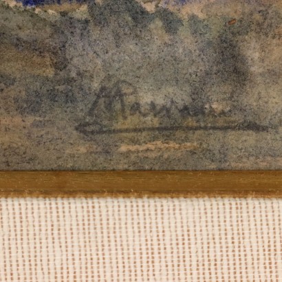 Watercolor on paper. Signed lower right. On the back there is a label from the Manzoni Art Gallery in Milan, with the data of the work. A leading exponent of 19th-century Lombard painting which was always linked to the love for the real, Pompeo Mariani was also called "the Italian impressionist", due to the influence in his works of French impressionism and those experiences, not only cultural, which constituted the era of the Belle Époque, which the artist lived between Milan, Bordighera, Nice and Montecarlo. In this small watercolor Mariani offers a glimpse of a city park, adorned with statues along the gate. The painting is presented in a period frame.