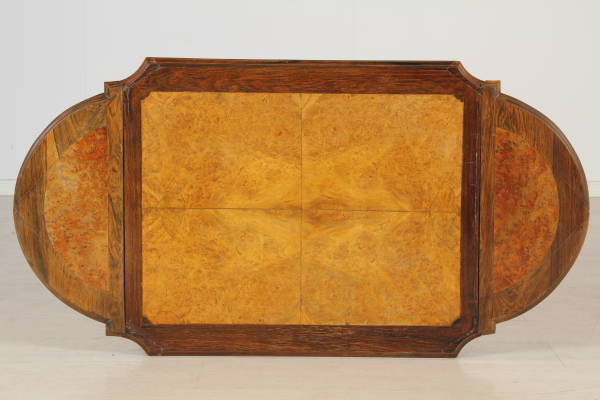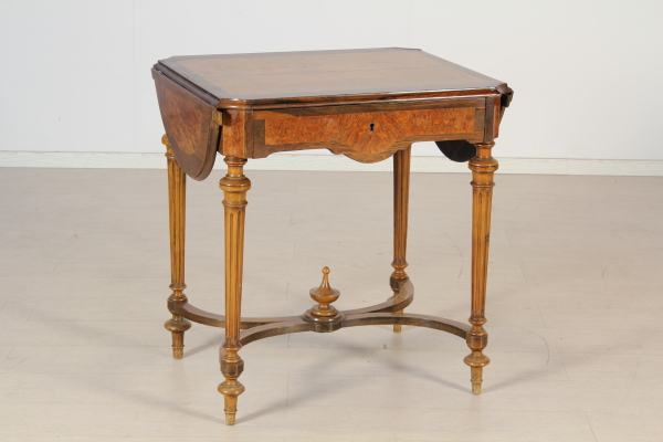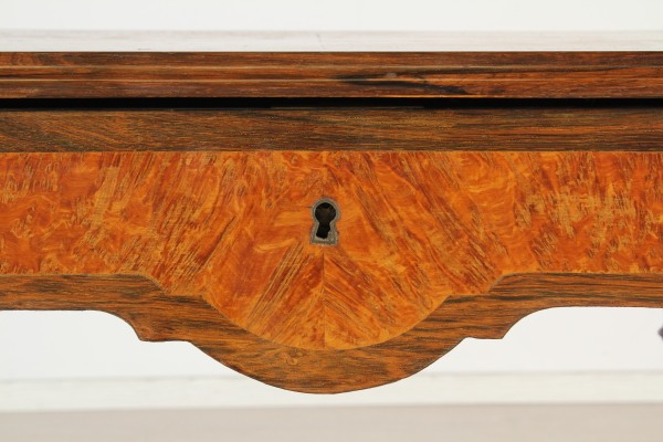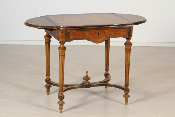 Writing table with turned legs supported by fluted and connected with Central turning cruise. Shaped tray, side fins and shaped top. Briarwood reserves.