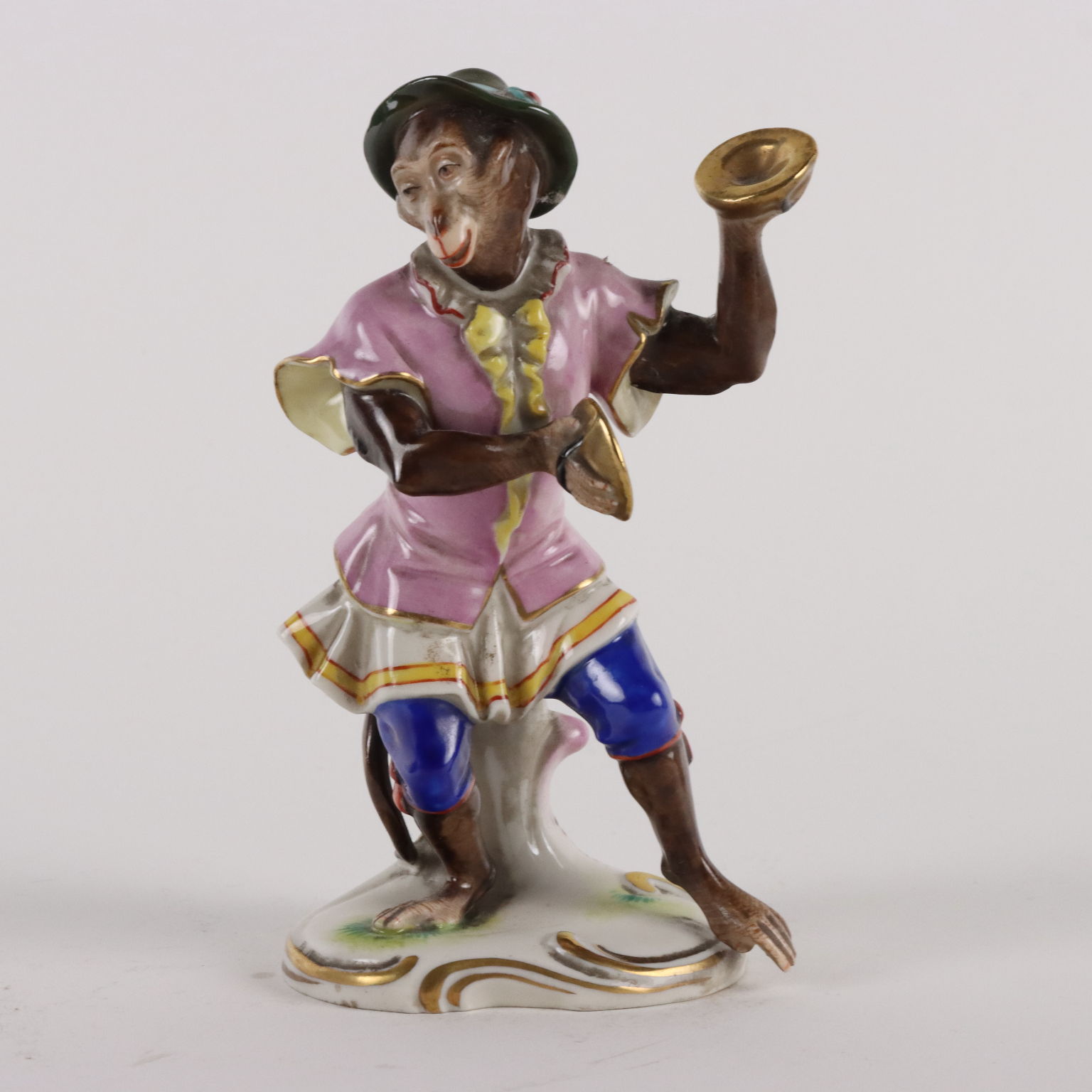 Pair of orchestral monkeys in polychrome decorated porcelain. Under the bases the manufacturing brand.