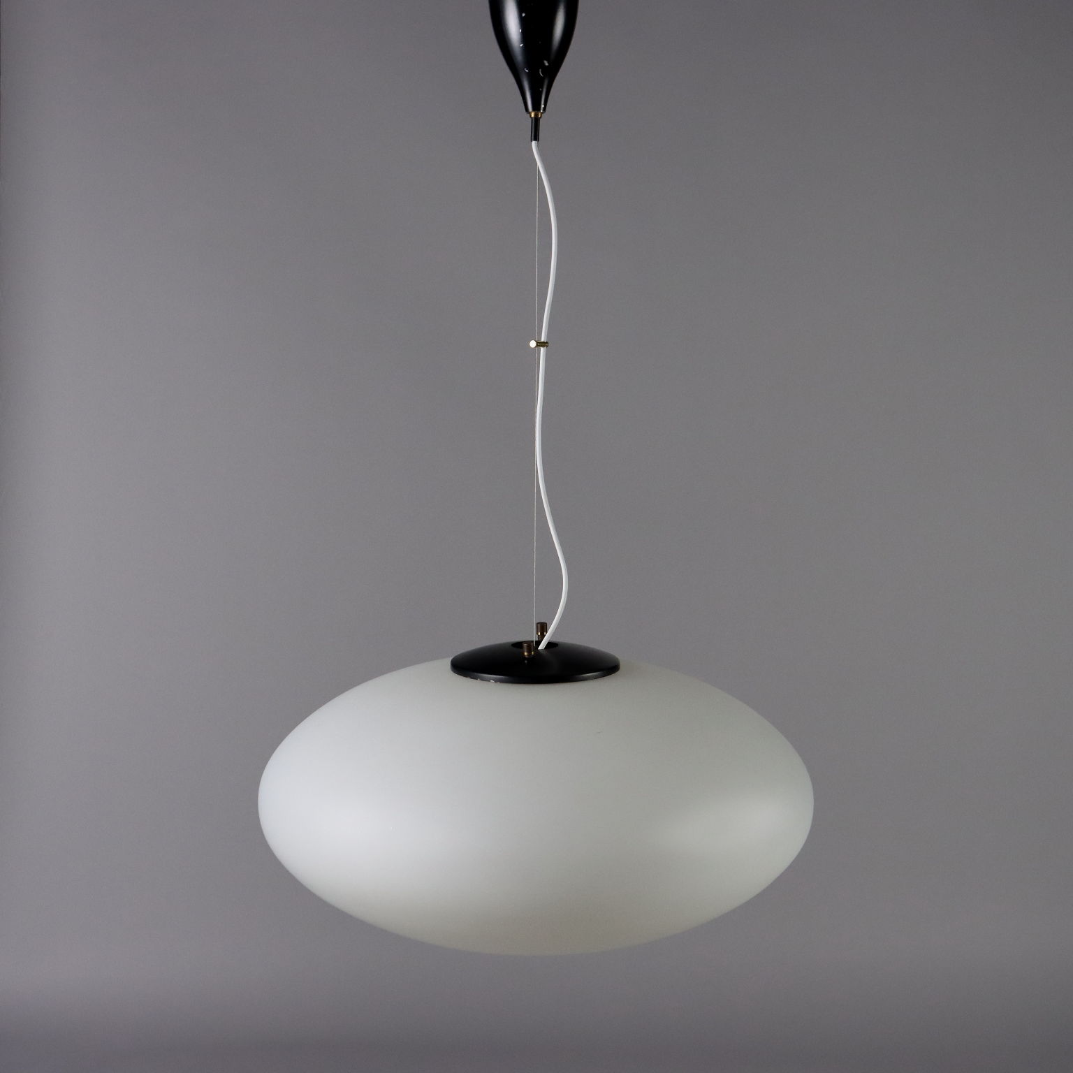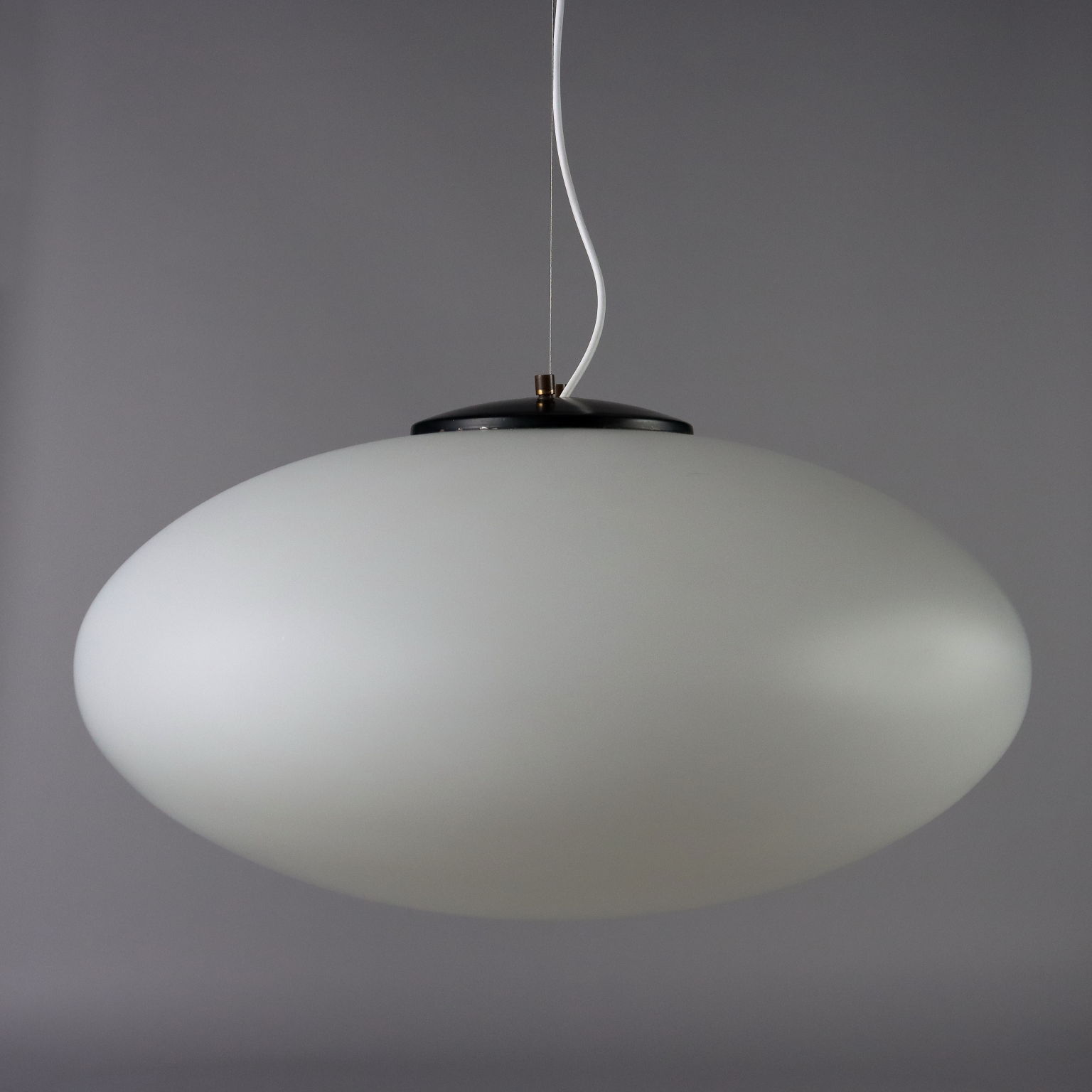 Elliptical shaped ceiling lamp, white opaline glass.