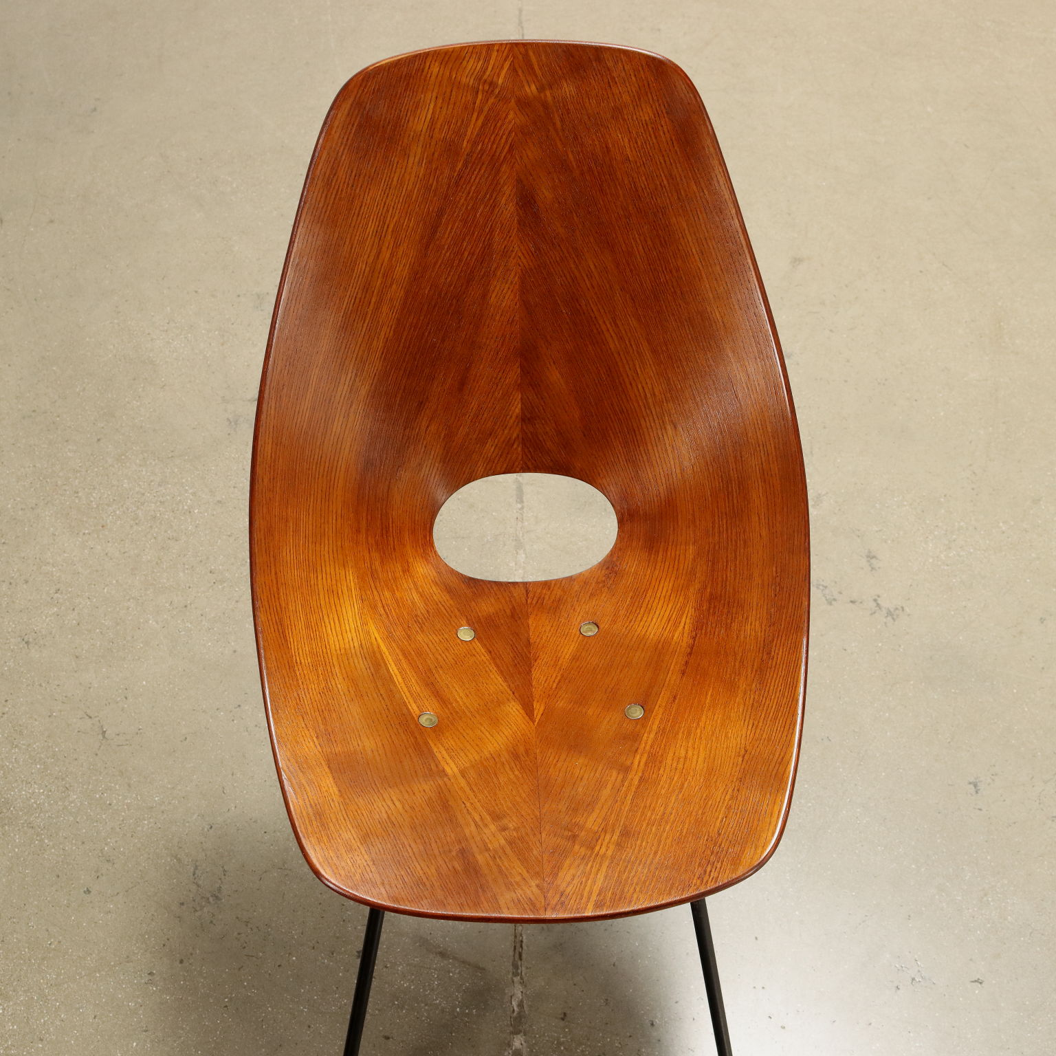 Group of curved wooden chairs with enamelled metal structure. Iconic chair that marked the history of designer seating; produced by the historic Brianzola F.lli Tagliabue company since 1955, recognized for the Compasso d'Oro award in 1956. It still remains today a product with an unmistakable and still very current line, sought after by collectors of historical pieces of Italian Design.