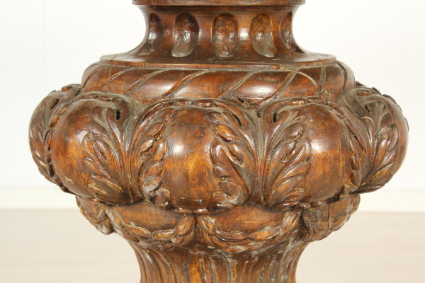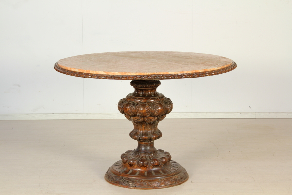 Governed by central turned and carved legs. Round marble floor has recessed. Carved edge.
