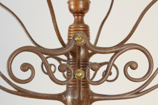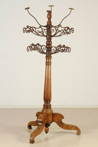 Hanger consists of a central body with three legs turned moves. Presents two sets of hangers and a revolving door both hats in wrought iron with bronze finishes.