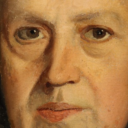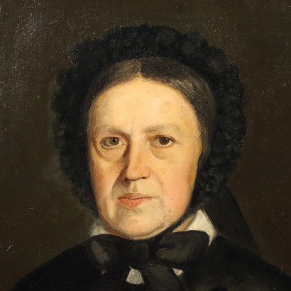 Oil on canvas. Portrait of a middle-aged woman, dressed entirely in black, perhaps for mourning. Restored and relined, the painting is presented in a contemporary gilded frame.