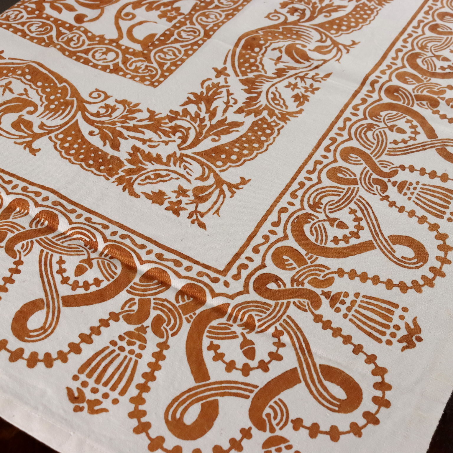 Antique Hand Printed Tablecloth Rusty Coloured XX Century