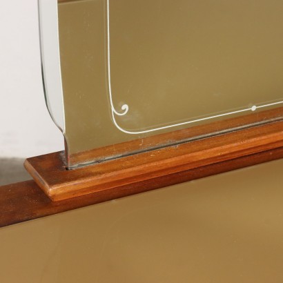 Description Dresser with mirror in walnut veneer, back-treated glass top.