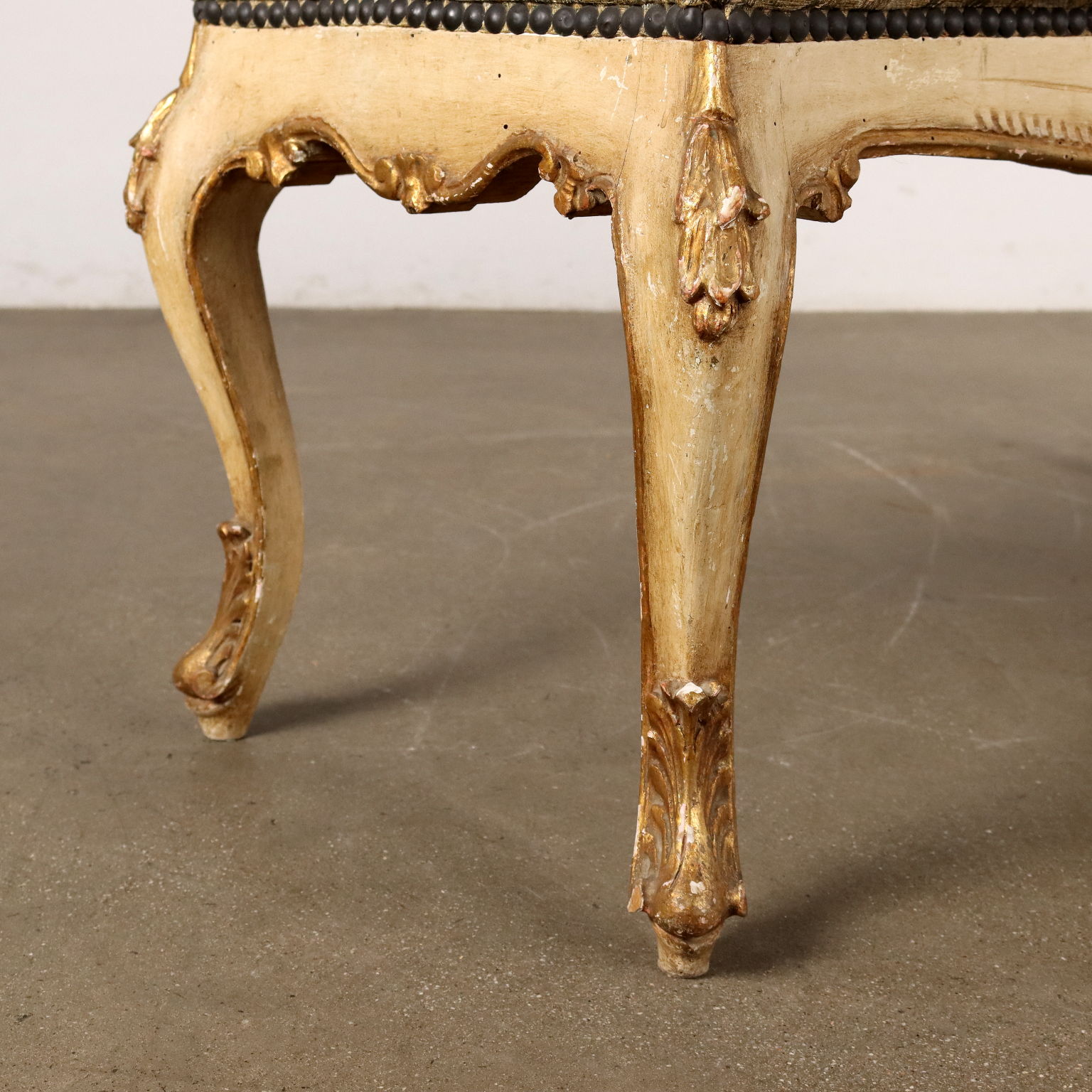 Antique Baroque Style Bench Wood Padded Seat XIX Century - Italy, Late XIX Century