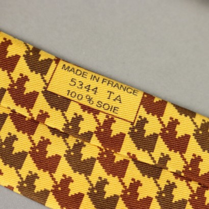 Tie designed by Hermès with drawings of small horses on a yellow background.