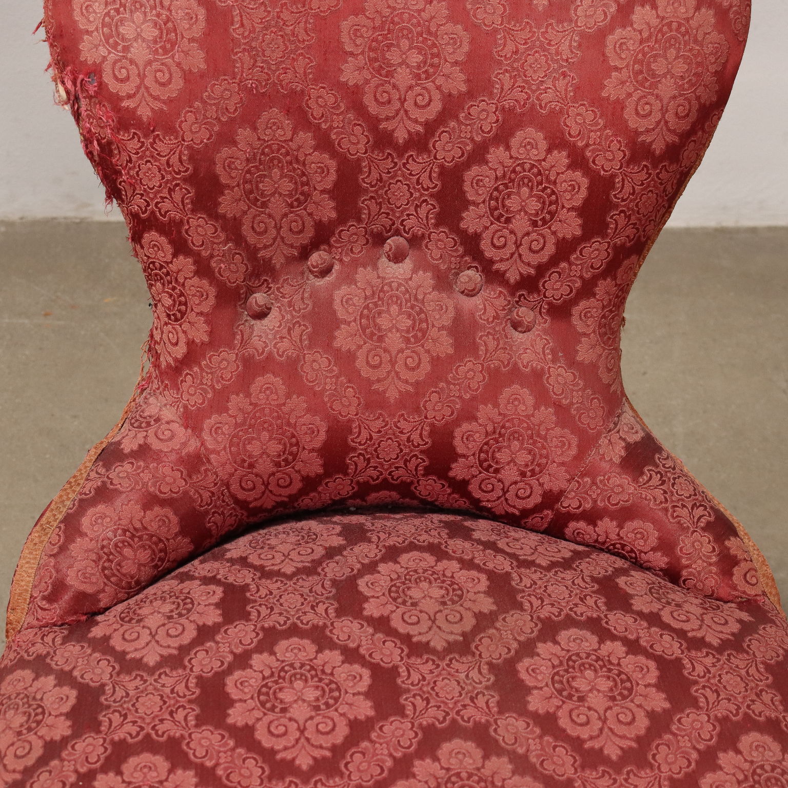 Pair of Umbertine armchairs in walnut, Italy, late 19th century. Seat and backrests padded and covered in damask fabric.