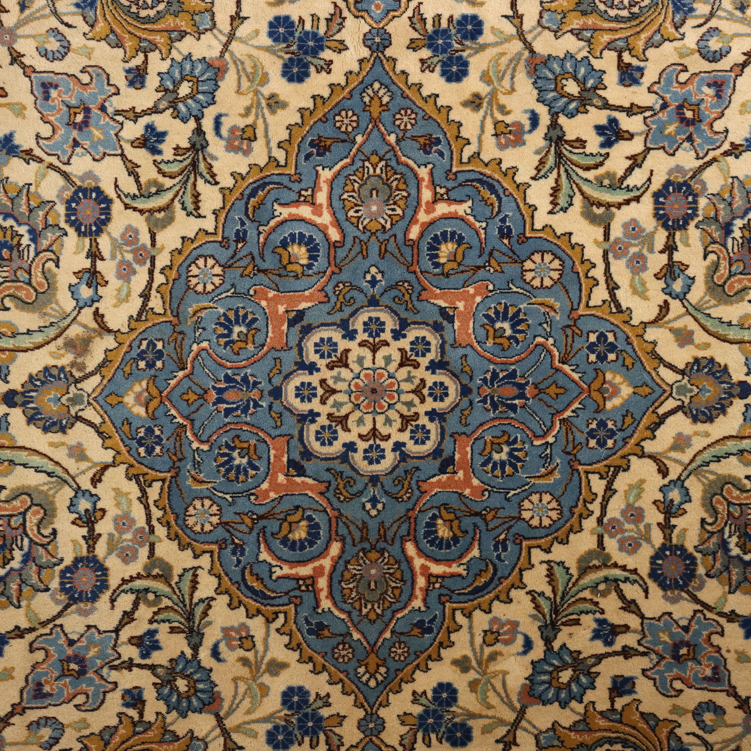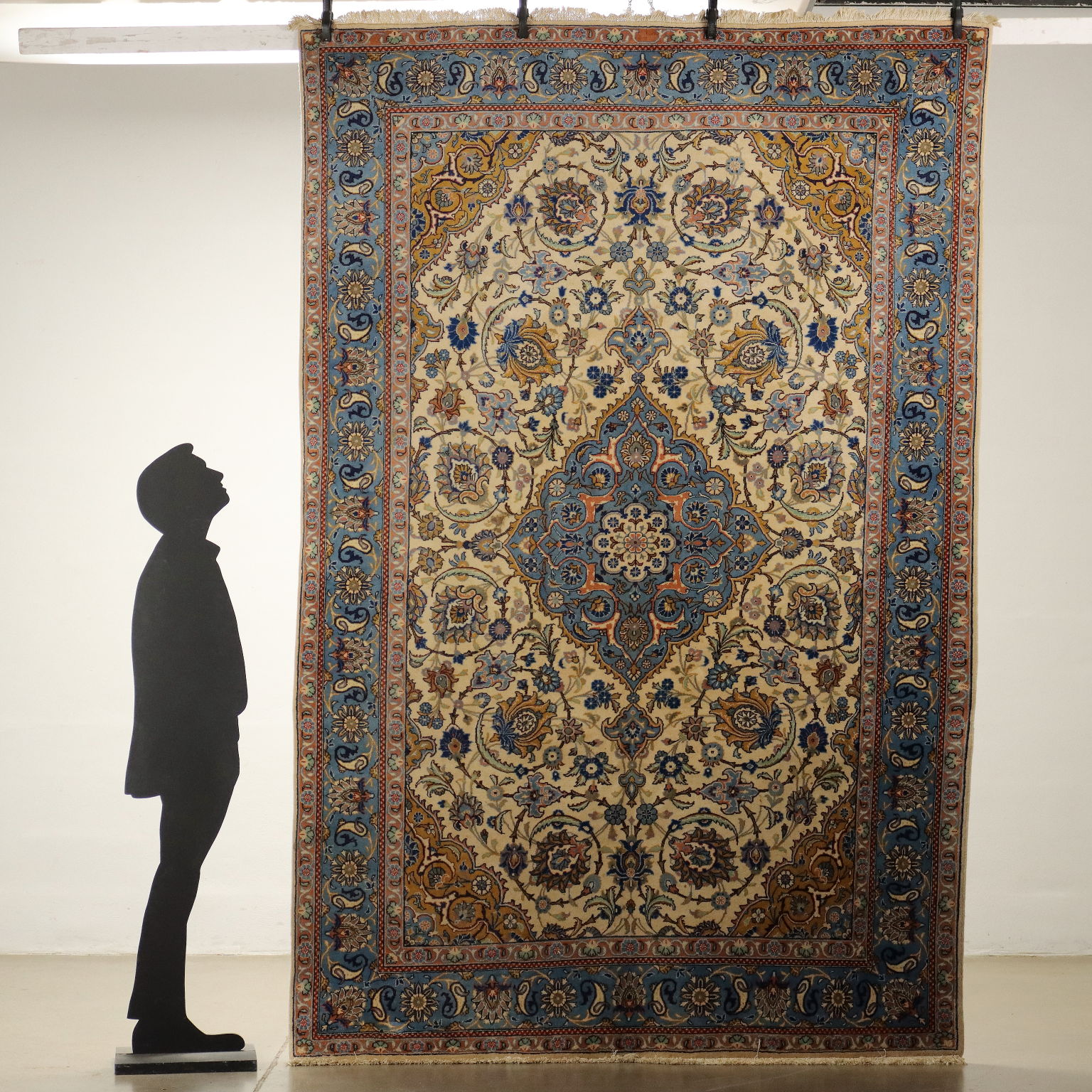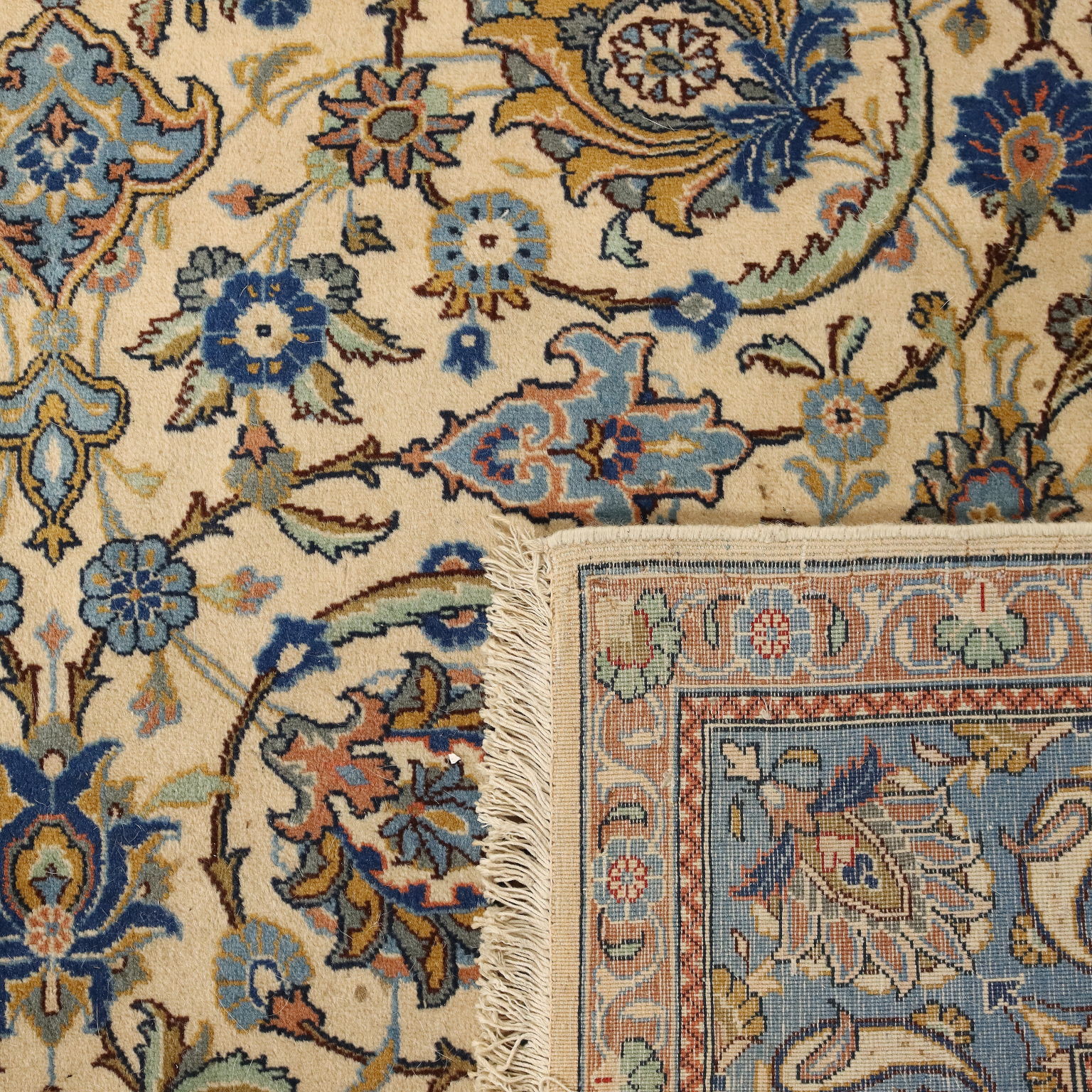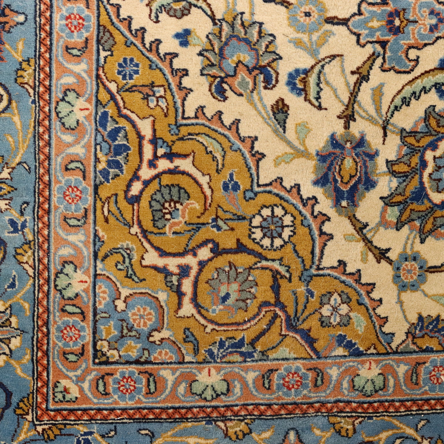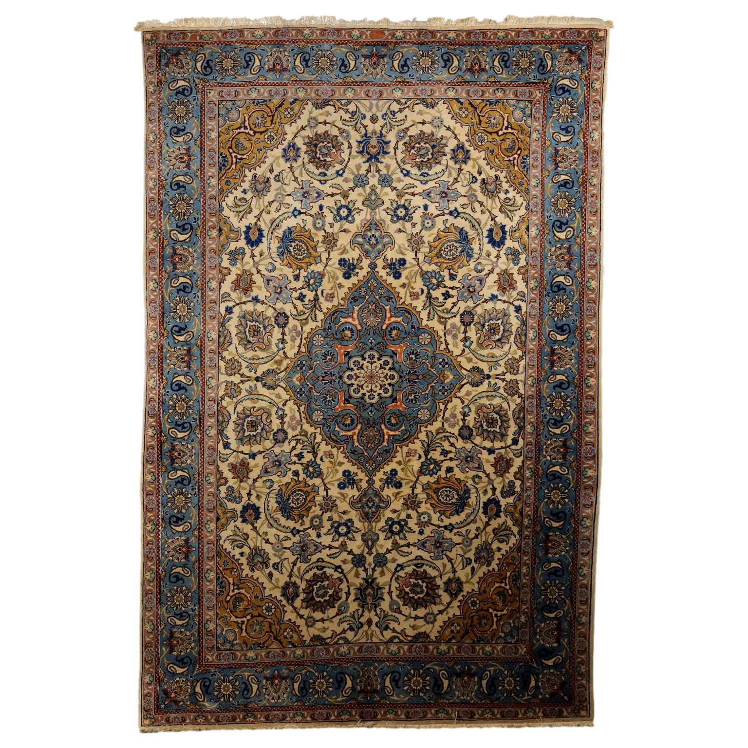 Antique Isfahan Carpet Cotton Wool Thin Knot Iran 119 x 77 In