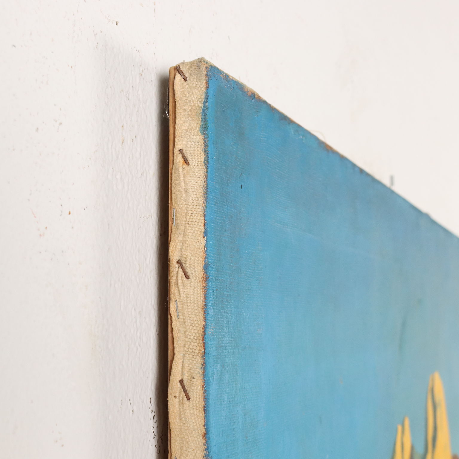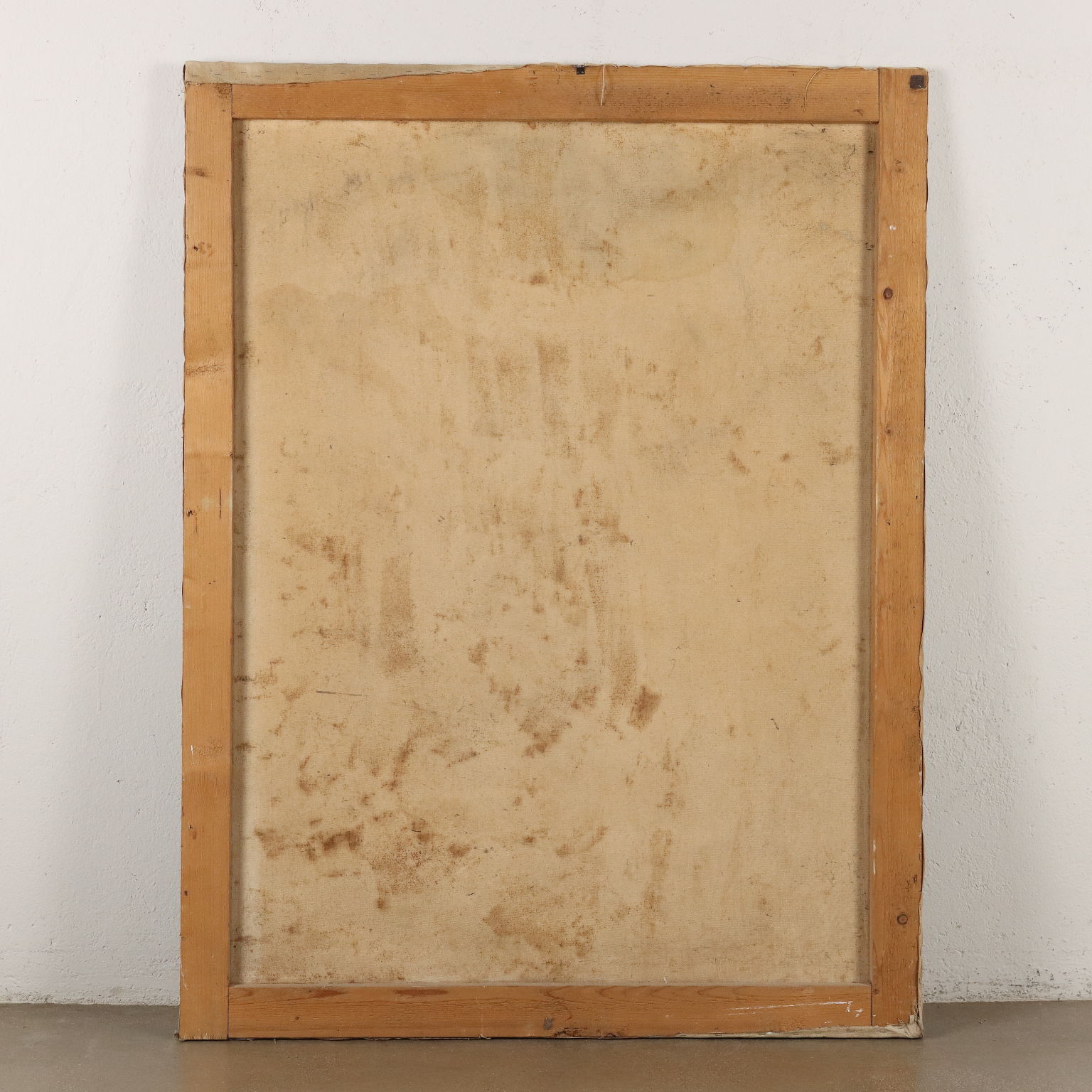 Oil painting on canvas. Signed and dated lower right. A large mountain landscape glimpse is proposed, certainly Alpine, in which figures of shepherds move, walking on the path with their animals. Annibale Scaroni dedicated himself to portraiture and landscape, favoring views of the surroundings of Bormio, places dear to him. Scaroni maintained his own pictorial style free from the artistic currents that developed in the century; the lively colors and the play of light and shadow stand out in the work, rendered with broad and decisive brushstrokes.