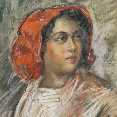 Mixed technique on paper. The work is signed lower right A. Mancini, but cannot be attributed to the master Antonio Mancini, but rather to a contemporary imitator. However of good quality, it presents the face of a young commoner. It is presented in a contemporary frame.