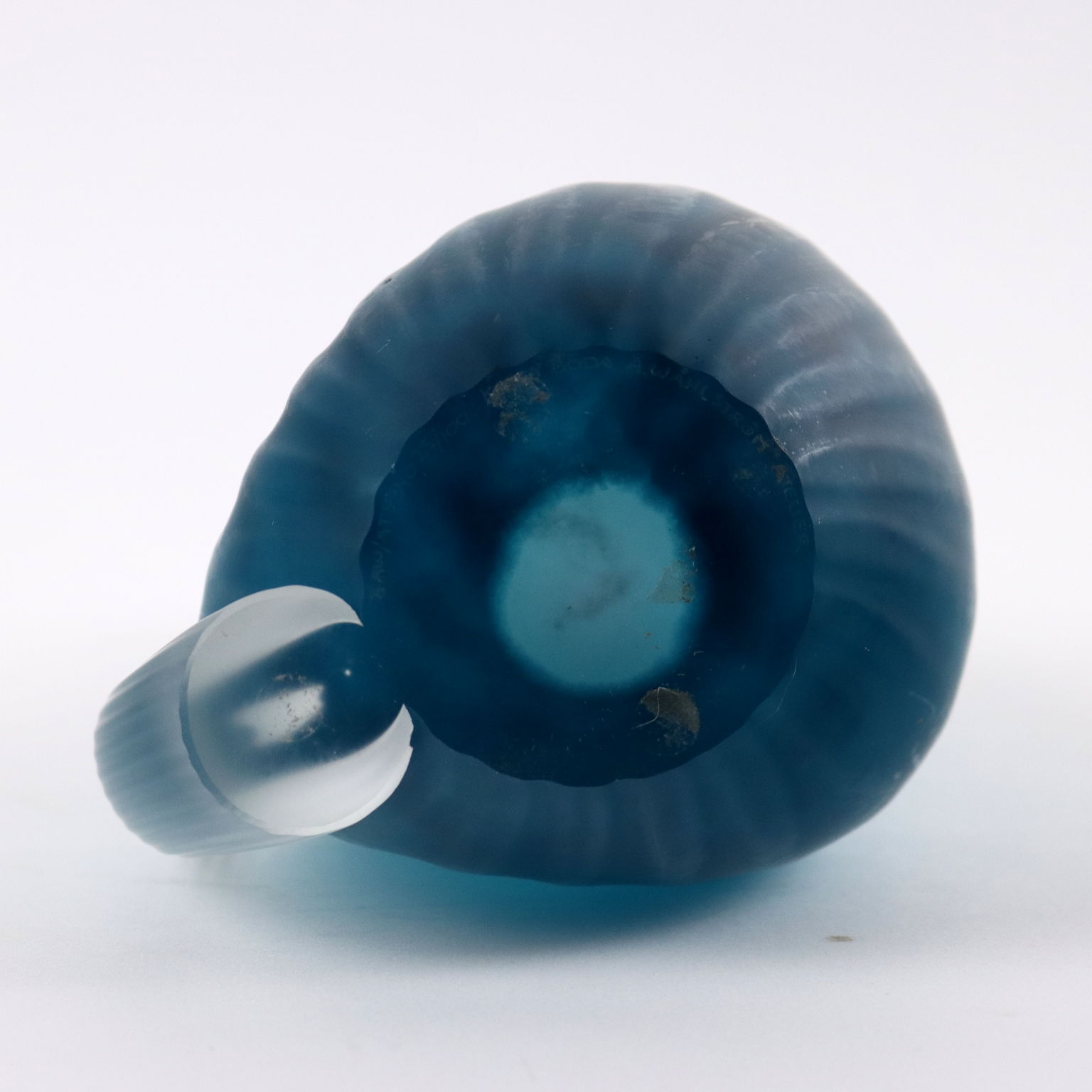 Biomorphic vase in clear and blue satin glass worked with grooves. Manufacturer's mark engraved under the base.