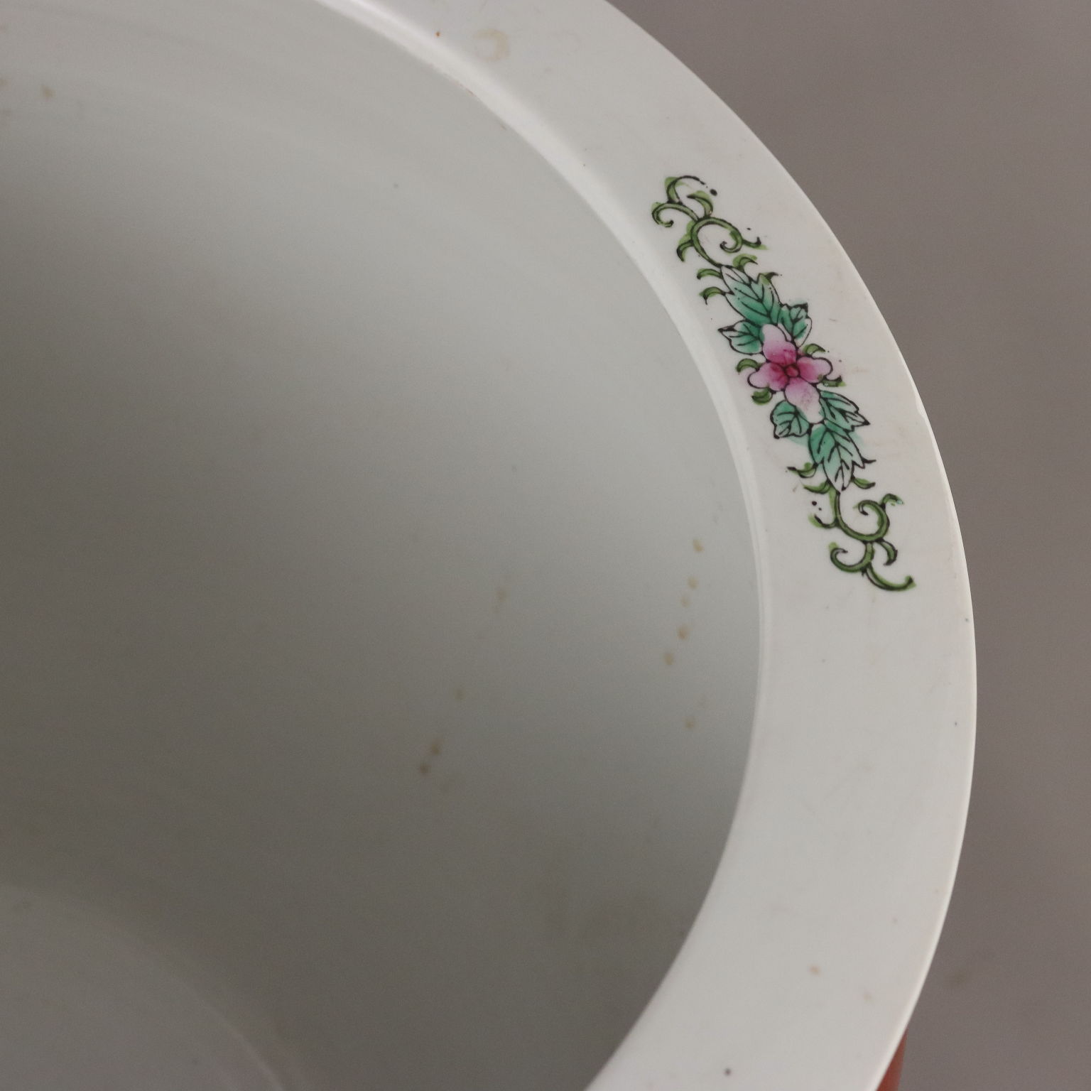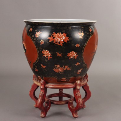 Porcelain Cachepot with Wooden Stand - China 20th Century