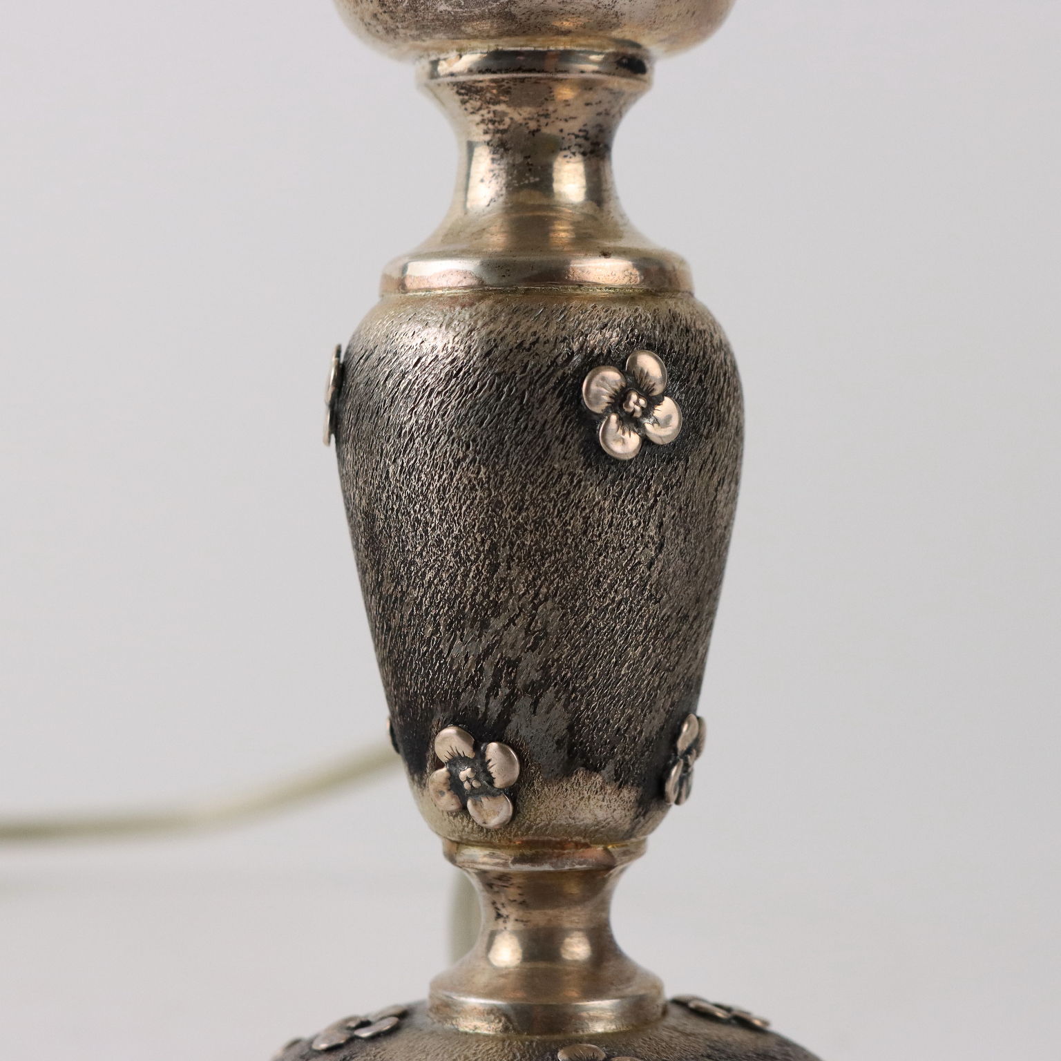 Pair of lampshades in turned and chiseled silver with small flowers in relief. Silver marks engraved on the base. Approximately 300 grams.