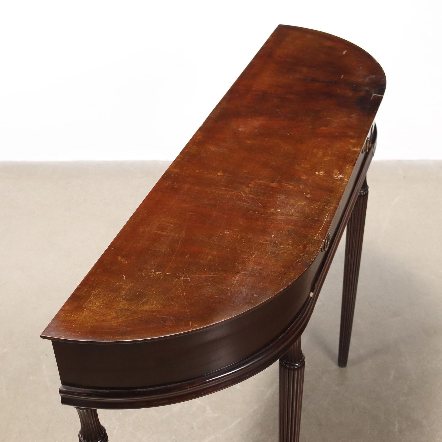 Console table with drawer under the top, in ebony-stained wood veneer and turned legs.