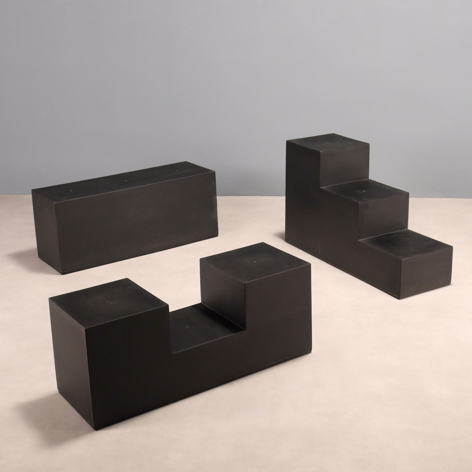 Set of three modular plastic tables (which can also be used as seats). Produced starting in the 1970s and usually paired with the iconic Camaleonda chairs, also designed by Mario Bellini, they are in good overall condition and bear the manufacturer's mark.
