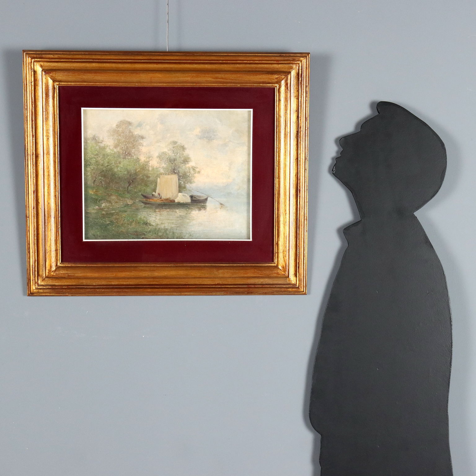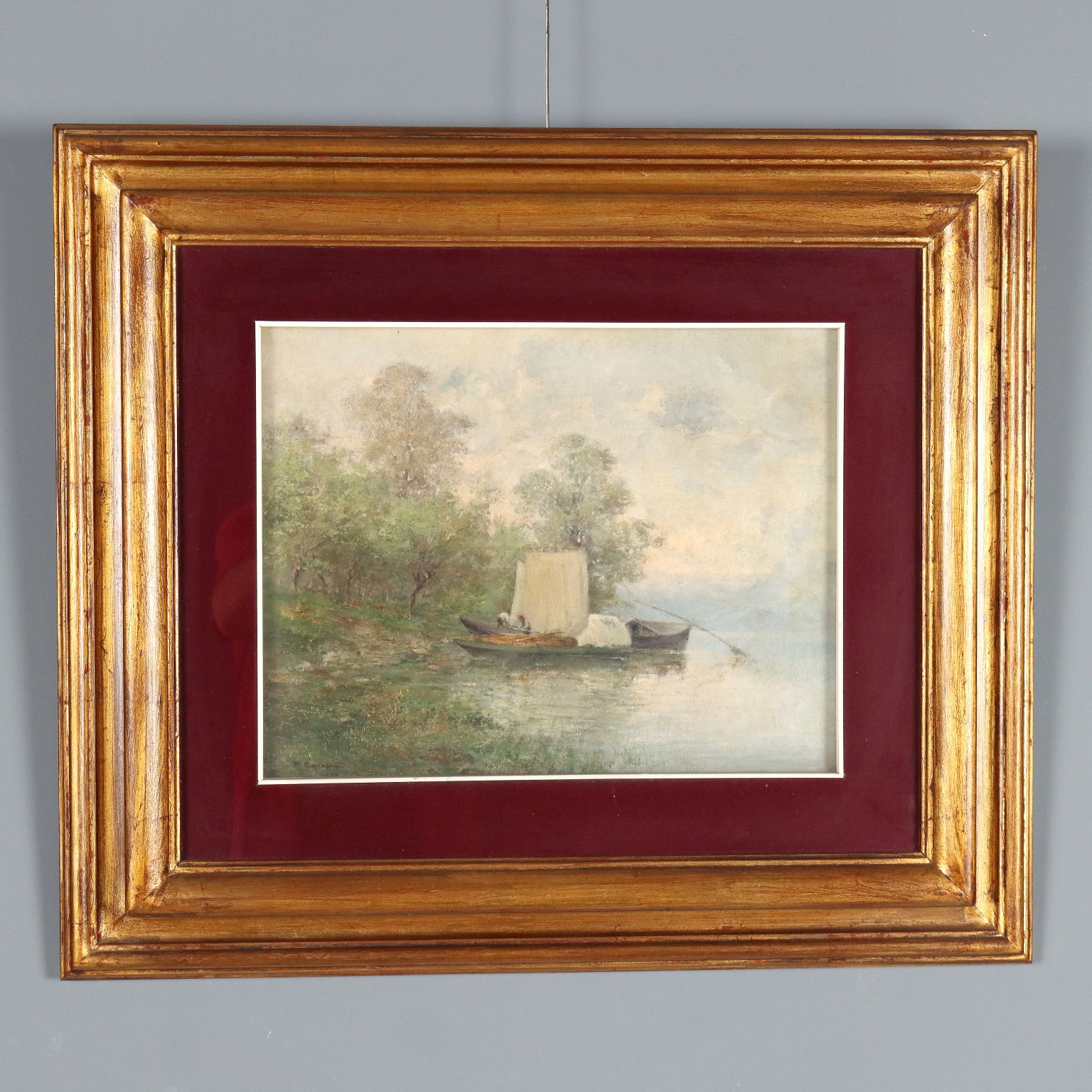 Landscape with Boats Painting Signed Ronaldo C. Baldelli Italy 1904 - Landscape with Boats 1904