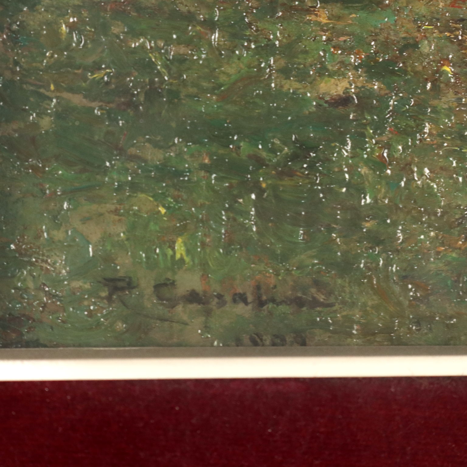 Oil on canvas. Signed and dated lower left. Milanese painter Robaldo Casalini Baldelli established himself as an Impressionist landscape painter, creating works in which figures and elements blend into one another in a play of light and shadow. Framed.