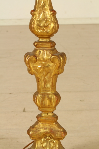 Twist, turned a table lamp. Carved In wood and pellet; Brown partially revived in the nineteenth century.