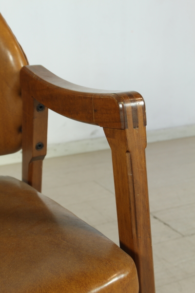 Armchair Ico Parisi; wooden frame, padding, foam upholstered with vinyl. Good condition, shows little signs of wear.