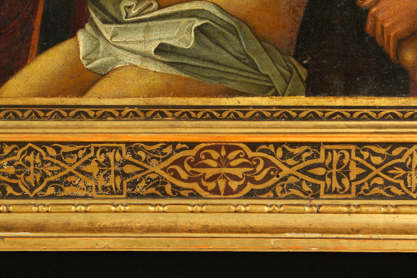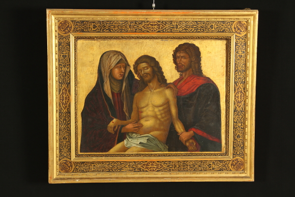 Anonymous, in the ways of Bellini Giovanni (1430-1516), tempera on wood of cedar. The prototype belliniano is here reproposed in the Dalmatian area too late with the ranging archaising gold Fund. Touch-ups and revival of gilding. Opera presented in the frame of the nineteenth century.